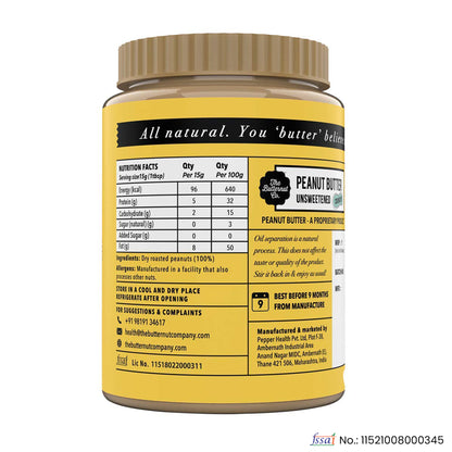 Natural Peanut Butter (Crunchy) 1kg | Unsweetened | 32g Protein | No Added Sugar | 100% Peanuts | No Salt | High Protein Peanut Butter | Gluten Free | Vegan | Cholesterol Free