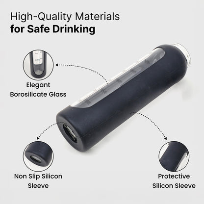1L Borosilicate Glass Water Bottle - Leak-Proof with Sleeve | Black