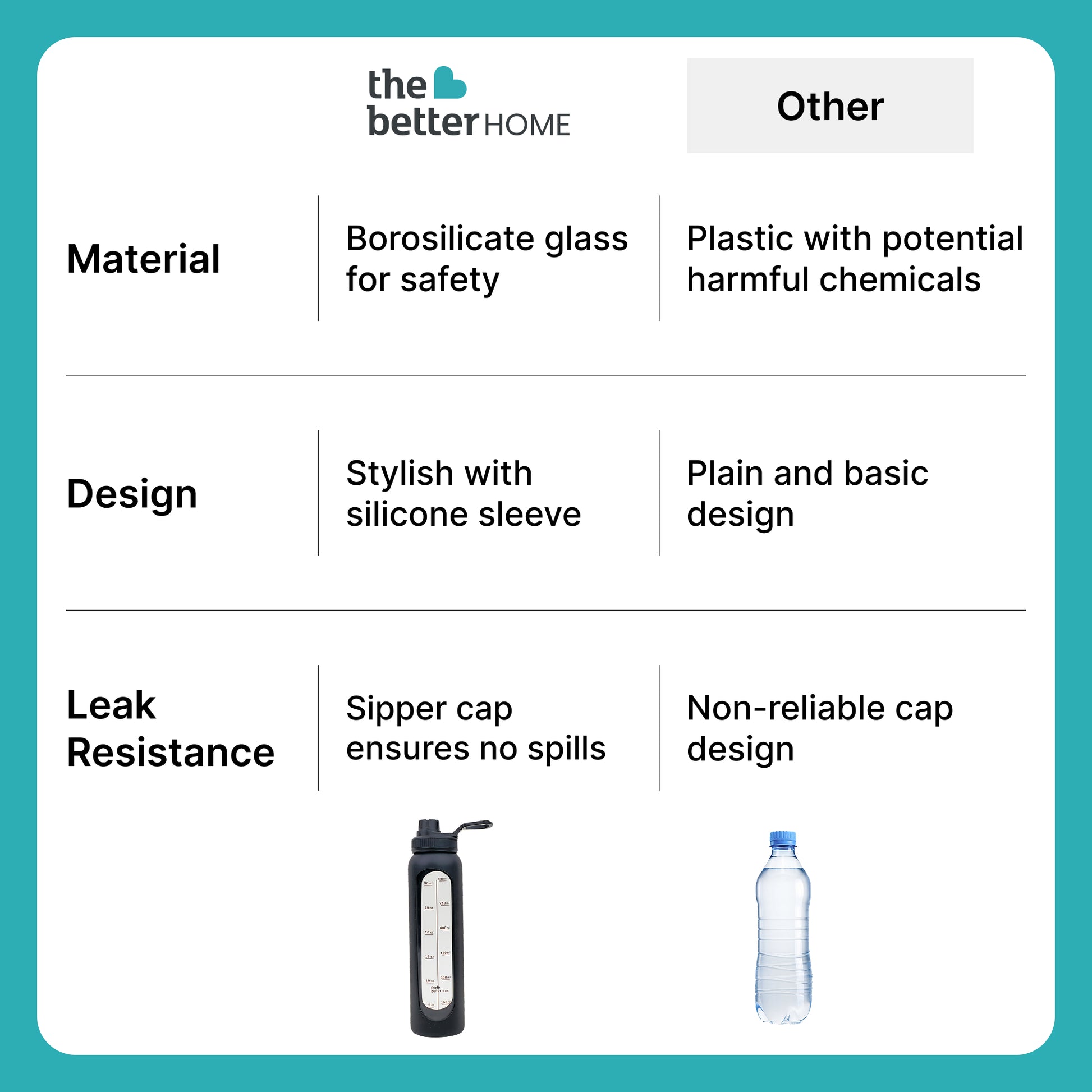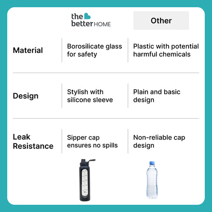 Whether you're a fitness enthusiast, office worker, or a traveler, the 1L Borosilicate Glass Water Bottle by The Better Home suits all lifestyles while supporting your hydration needs.