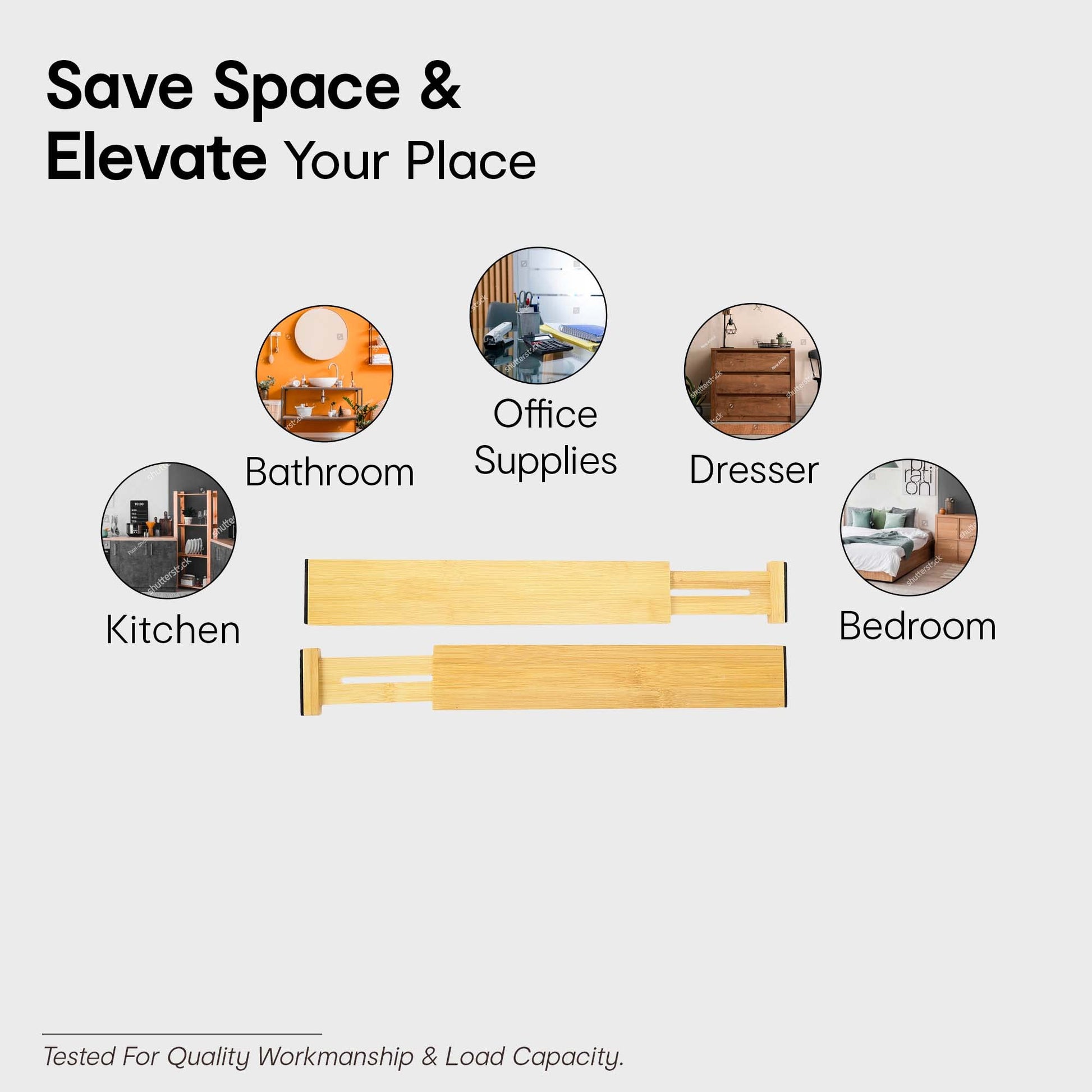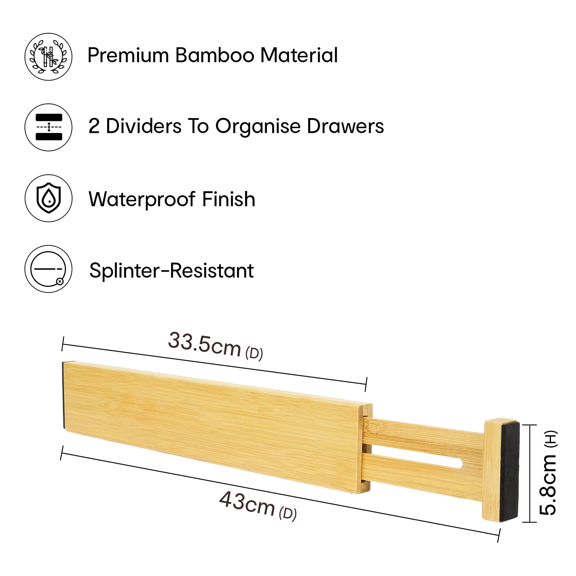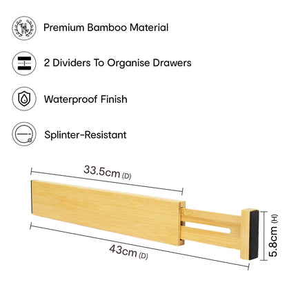 2 Pack Bamboo Drawer Dividers - Adjustable & Versatile | 13-17 inches | Natural Brown