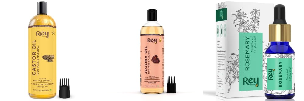 Rey Naturals Castor Oil for Skin Care, Hair Growth (Arandi Oil) | Premium Cold Pressed | Pure & Virgin Grade - 200 ML (Castor Jojoba Rosemary Combo)