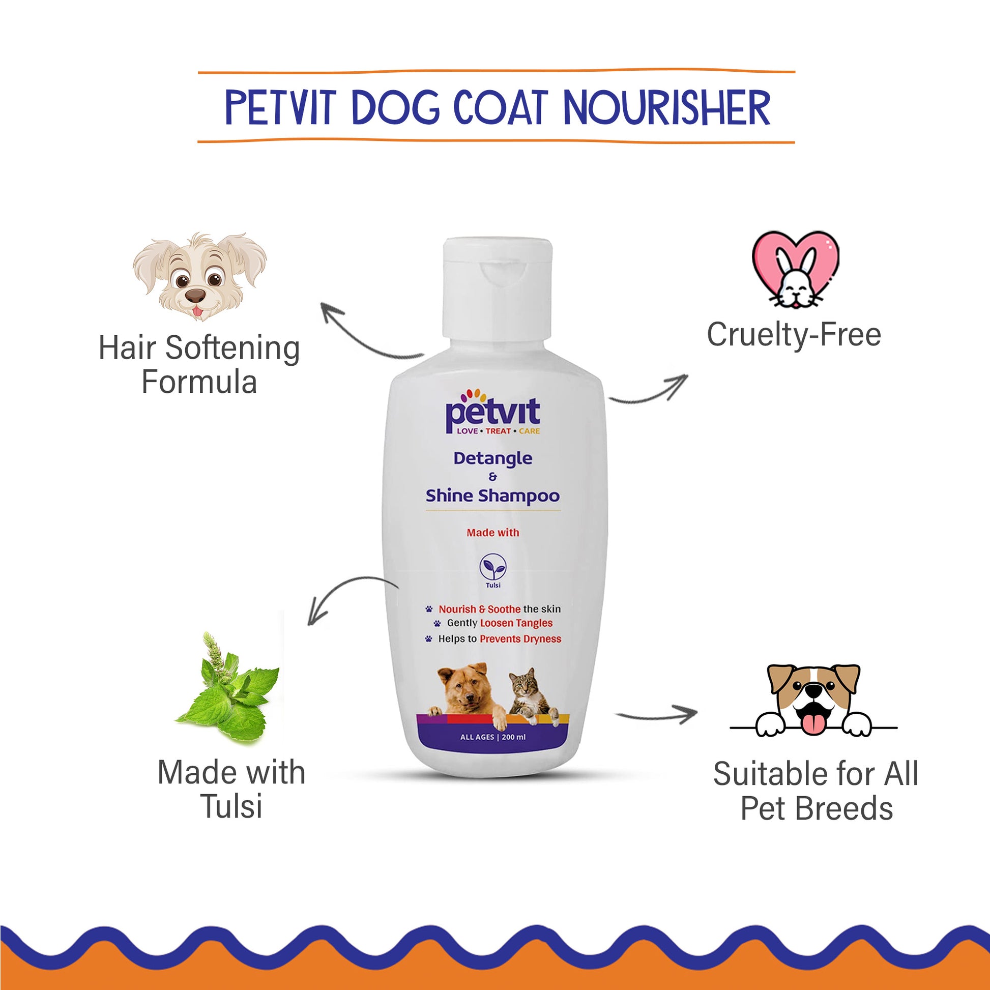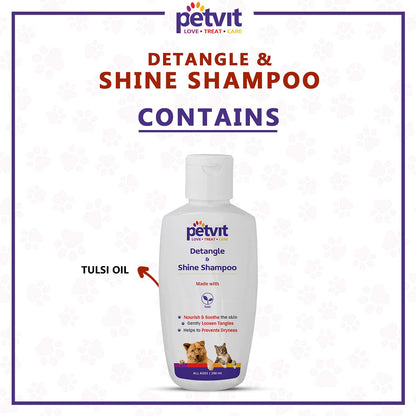 Detangle & Shine Dog Shampoo | Tulsi Oil Enriched | Loosens Knots & Tangles | Dog Grooming Essential | 200 ML