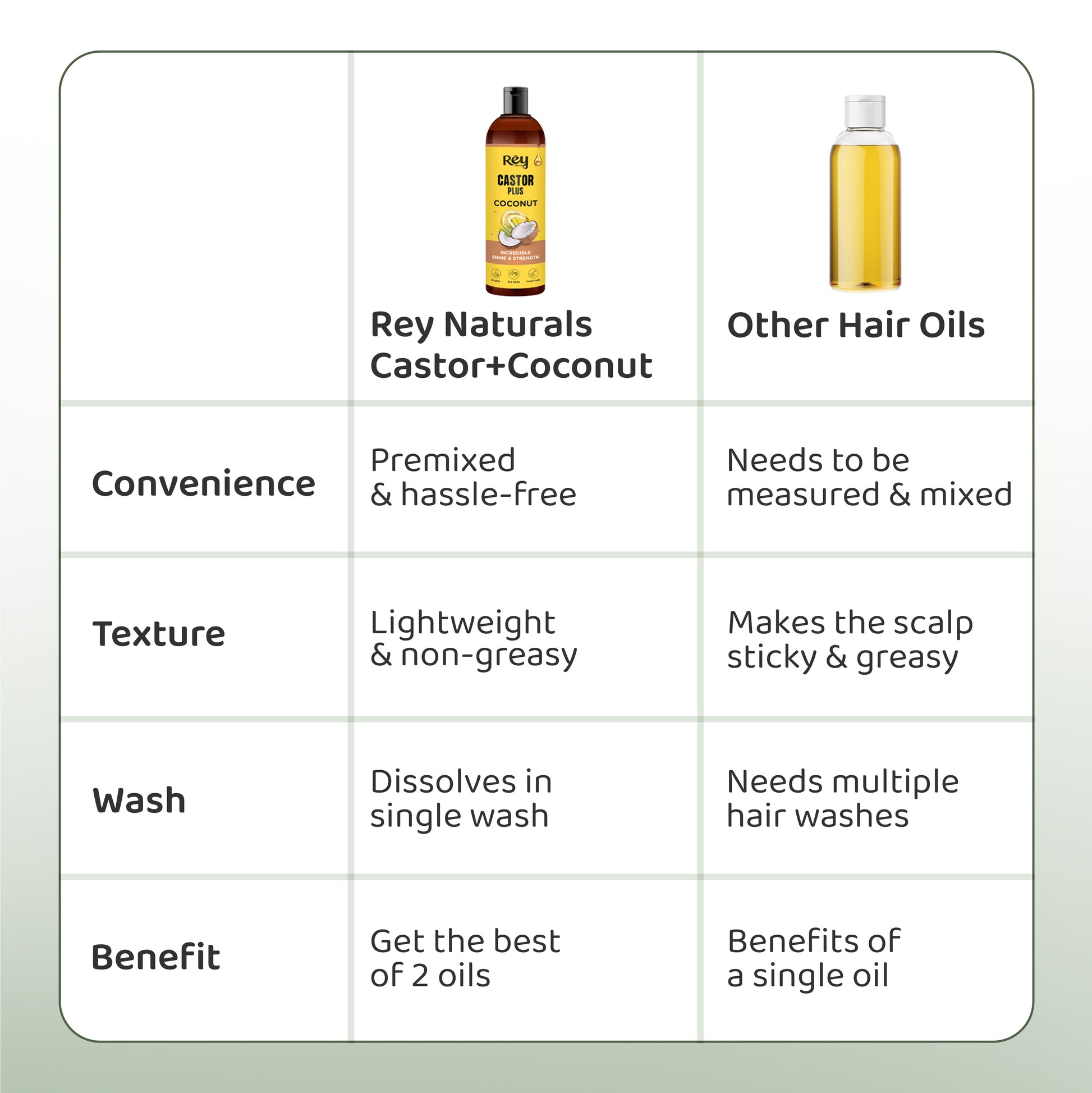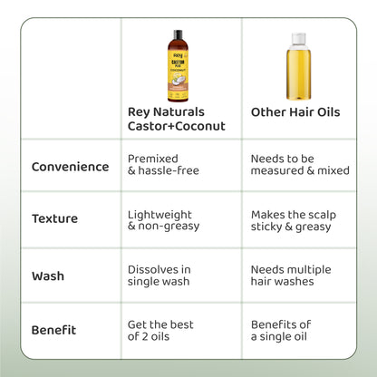 Rey Naturals Premixed cold-pressed Castor Plus Coconut Hair oil | Adds Incredible Shine And Strength To Hair | Moisturize Dry Hair, Scalp & Skin | Suitable for Men & Women 200 ml