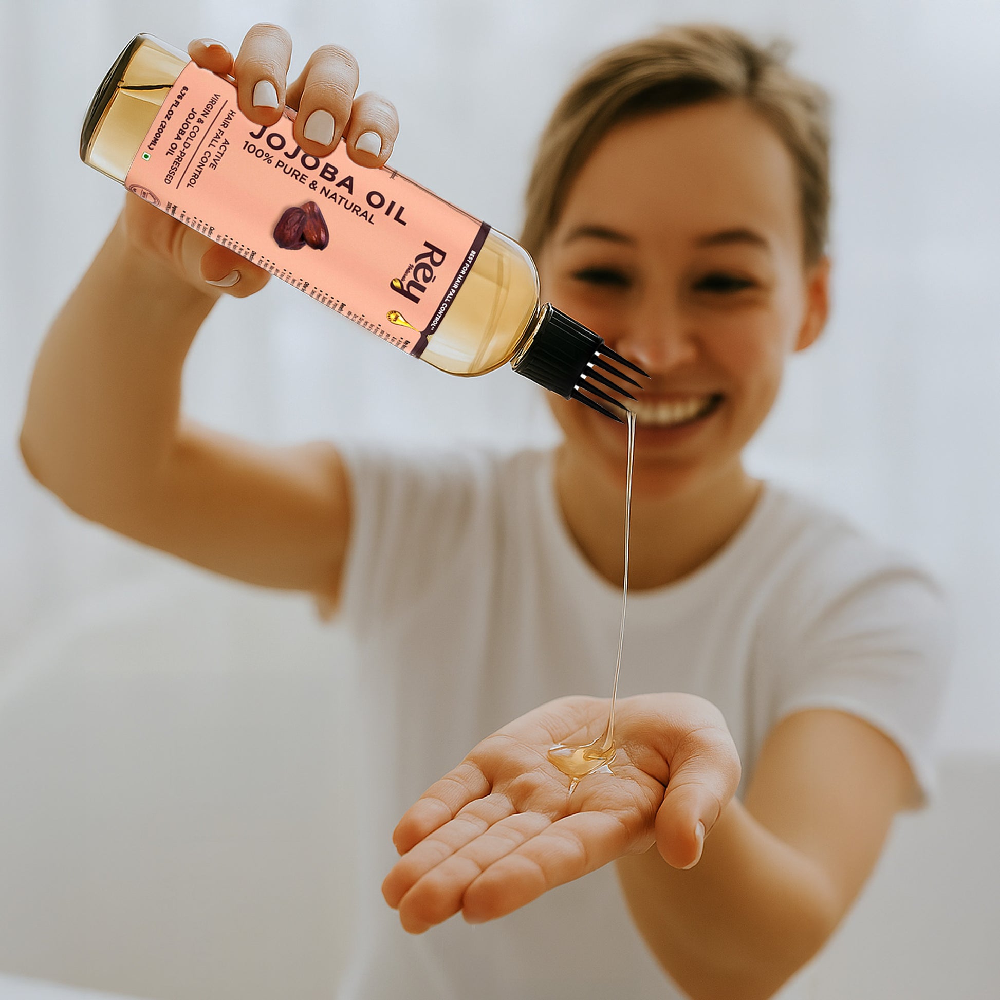 Ideal for various uses, you can apply this versatile oil at home, in salons, or even while traveling. Experience the rejuvenating effects of Rey Naturals Jojoba Oil in settings like:
