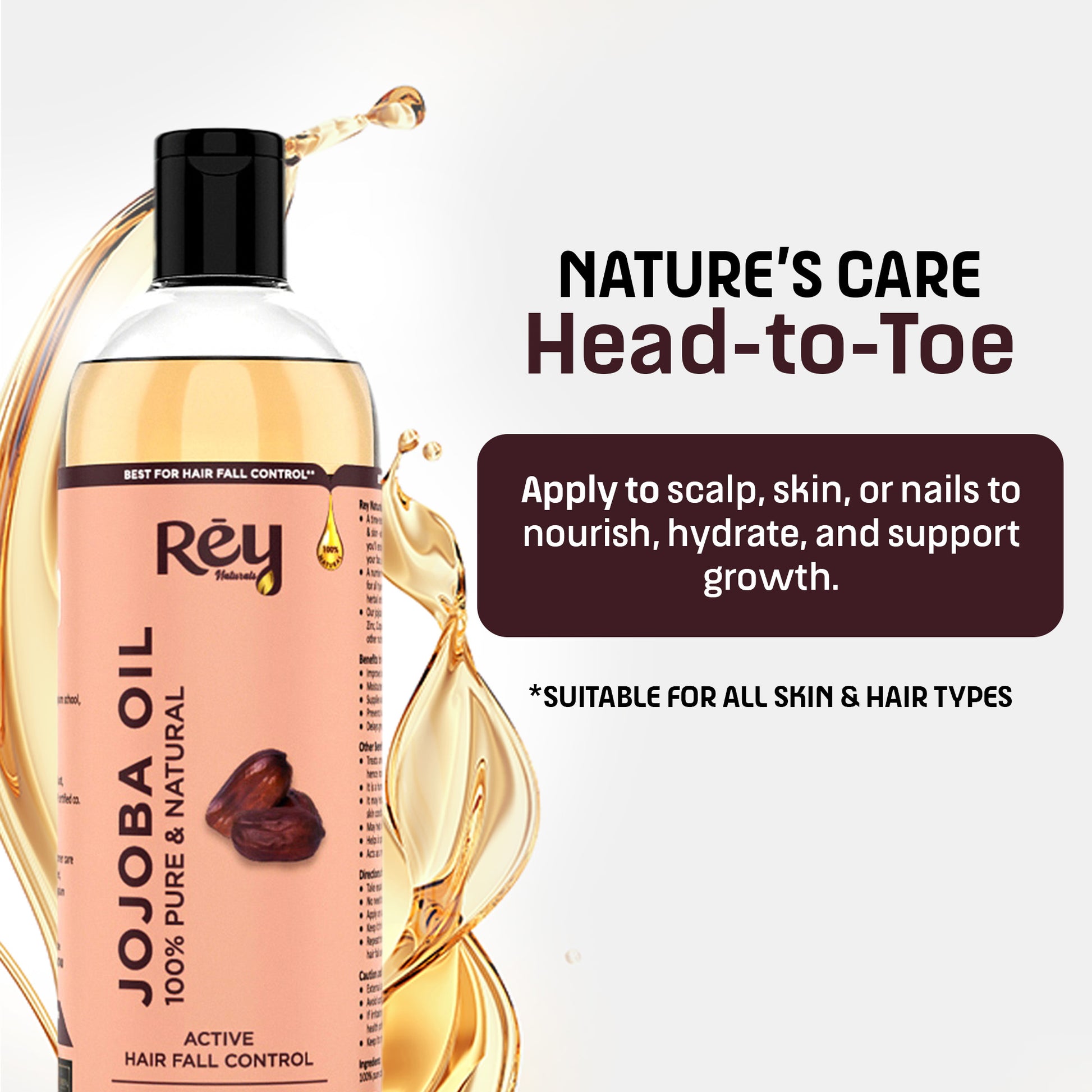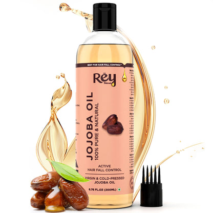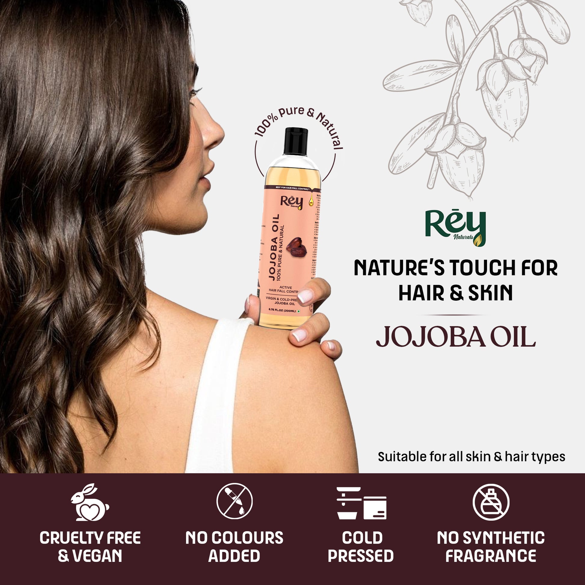 Rey Naturals Cold Pressed Jojoba Oil For Hair Growth | Jojoba Oil for face | Jojoba For Skin And Nails | For Men And Women - 200ML