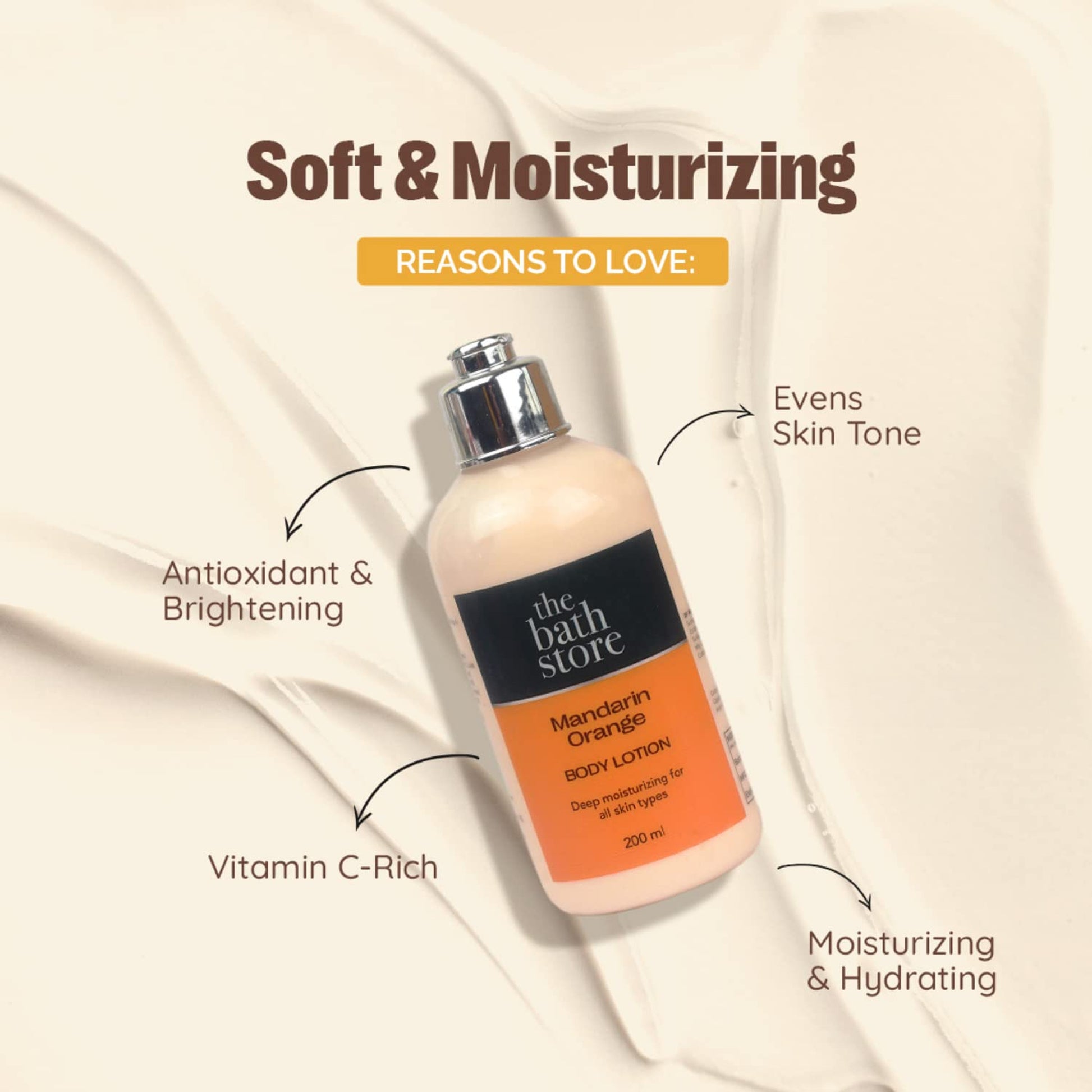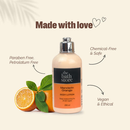 The Bath Store Mandarin Orange Body Lotion For Summer | Hydrating Moisturizer For Dry Skin, Combination & Sensitive Skin | Body Lotion for Women & Men | 24 Hours Moisture Lock - 200 Ml