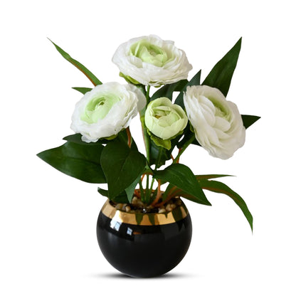 24cm White Artificial Plants with Pot - Elegant Home Decor | Faux Roses