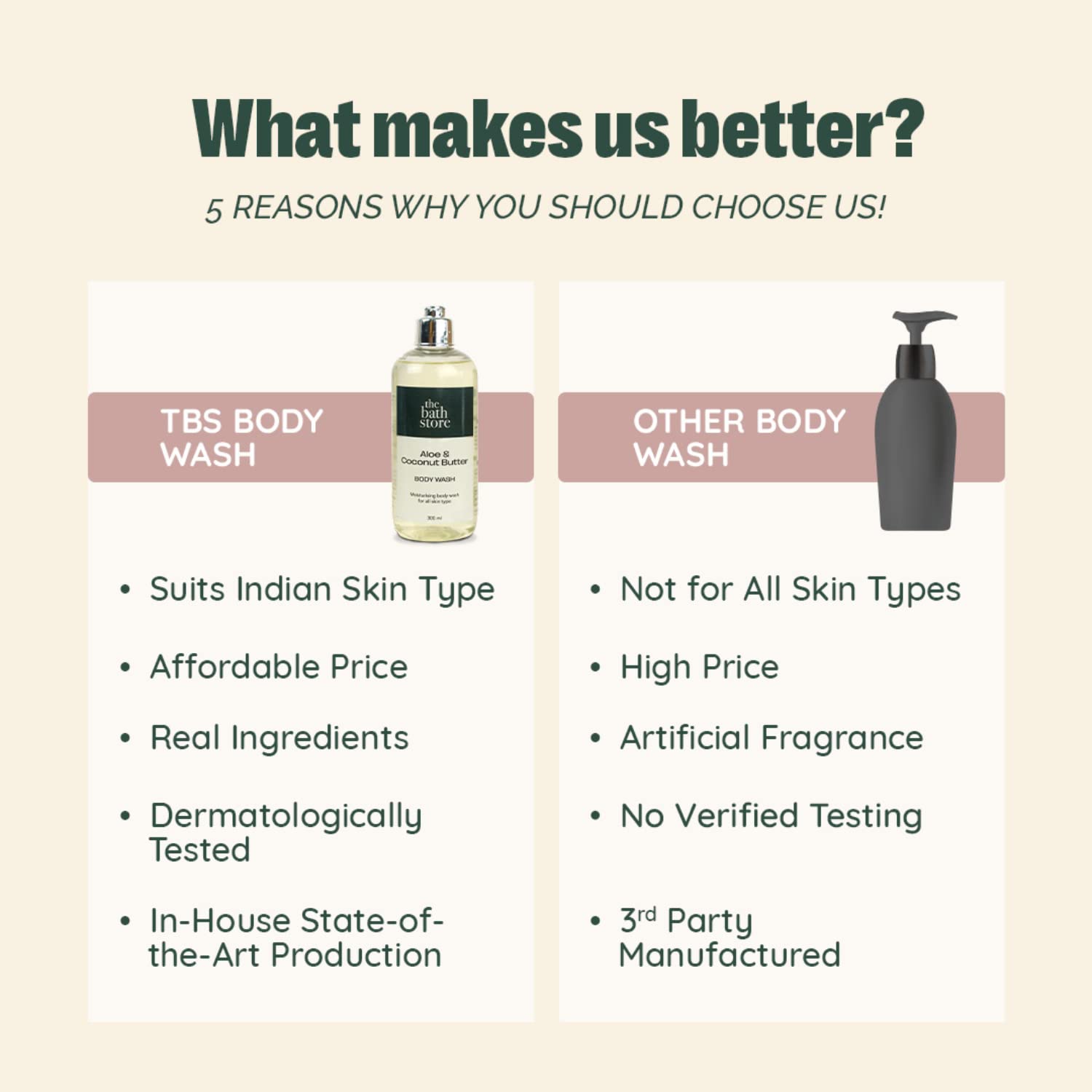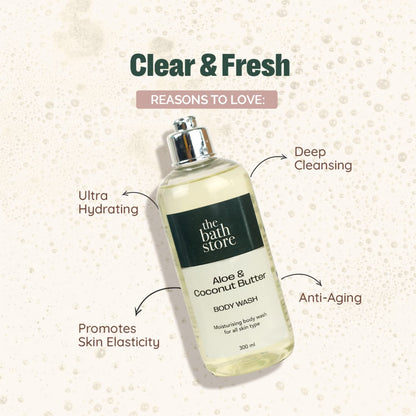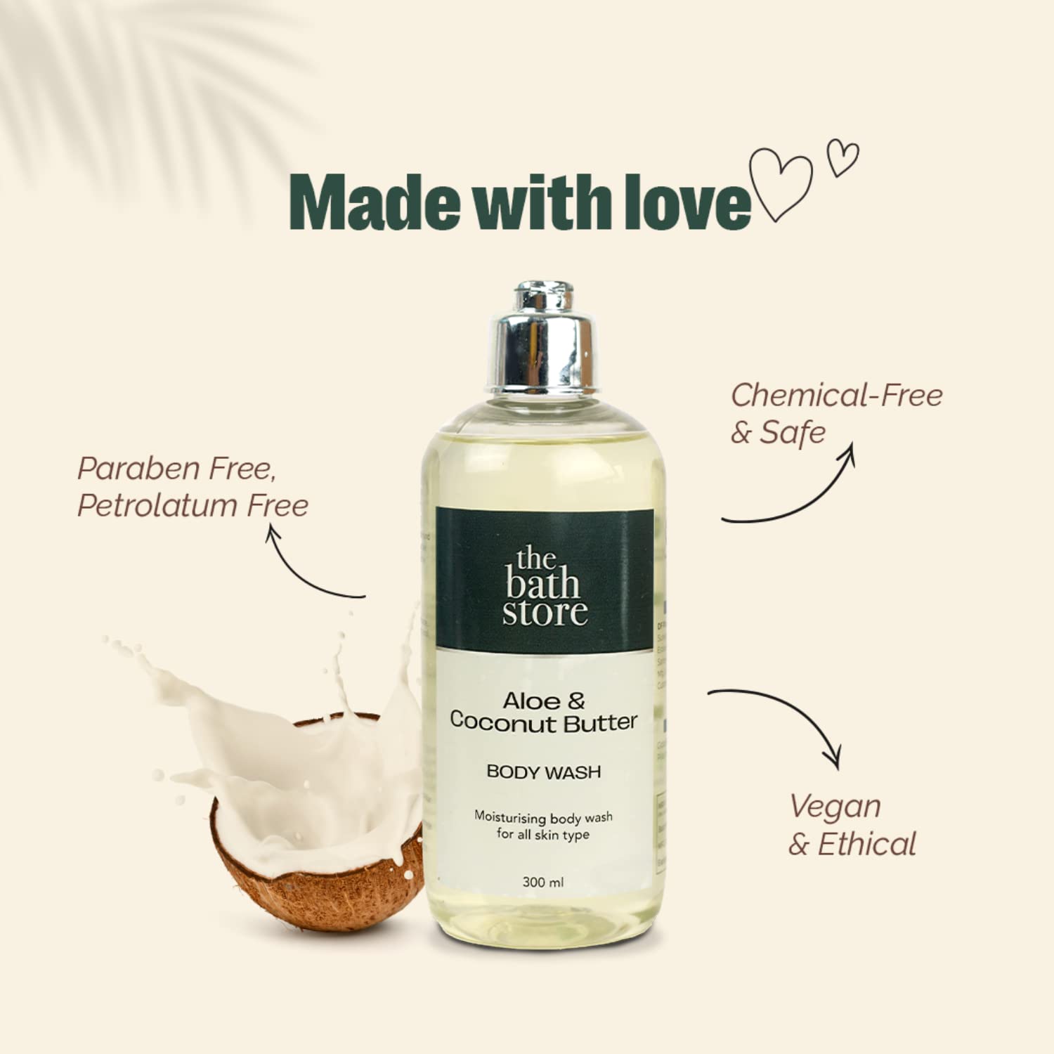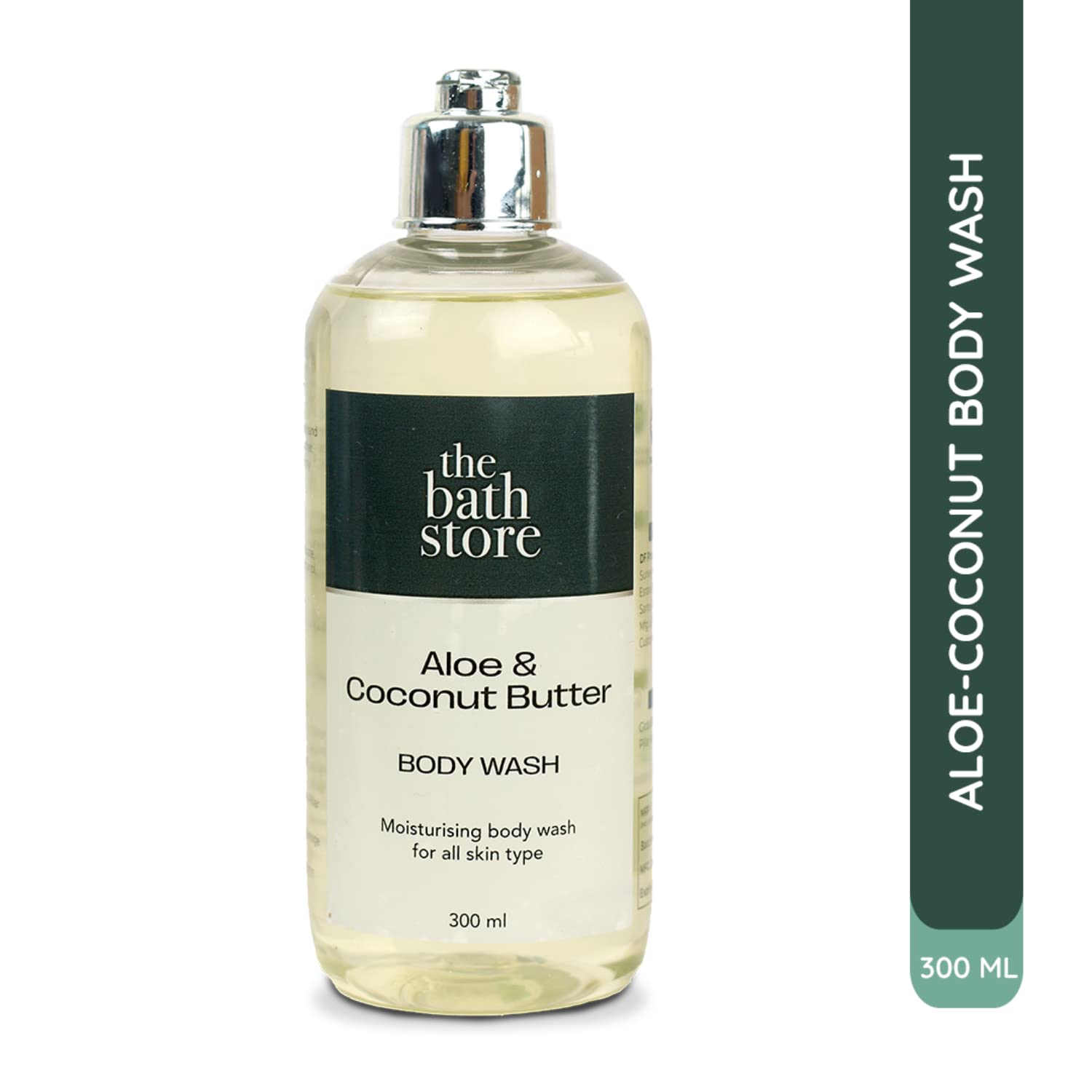 The Bath Store Aloe Butter Coconut Body Wash - Deeply Cleansing | Exfoliating | Nourishing Liquid Soap | Dead skin cells | Men and Women - 300ml