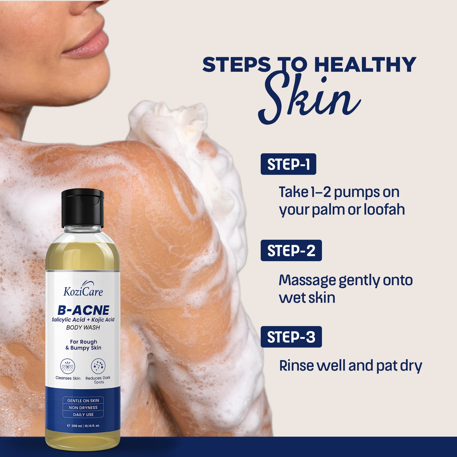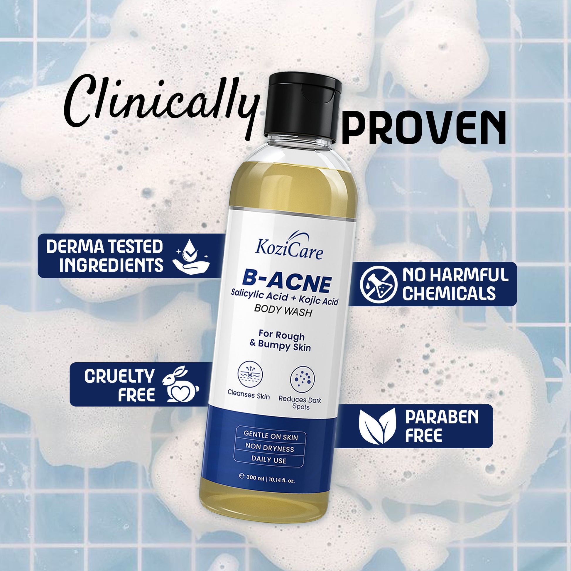 Kozicare Skin Lightening Body Wash Enriched with Kojic Acid, Niacinamide, Alpha Arbutin | Smoothen Rough & Bumpy Skin, Reduces Pigmentation & Dark Spots | For All Skin Types – 300ml