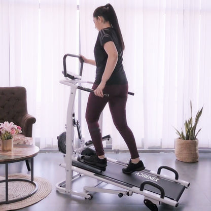 4 in 1 Multipurpose Manual Treadmill | Push Up Bar, Stepper, Twister | Compact | Grey
