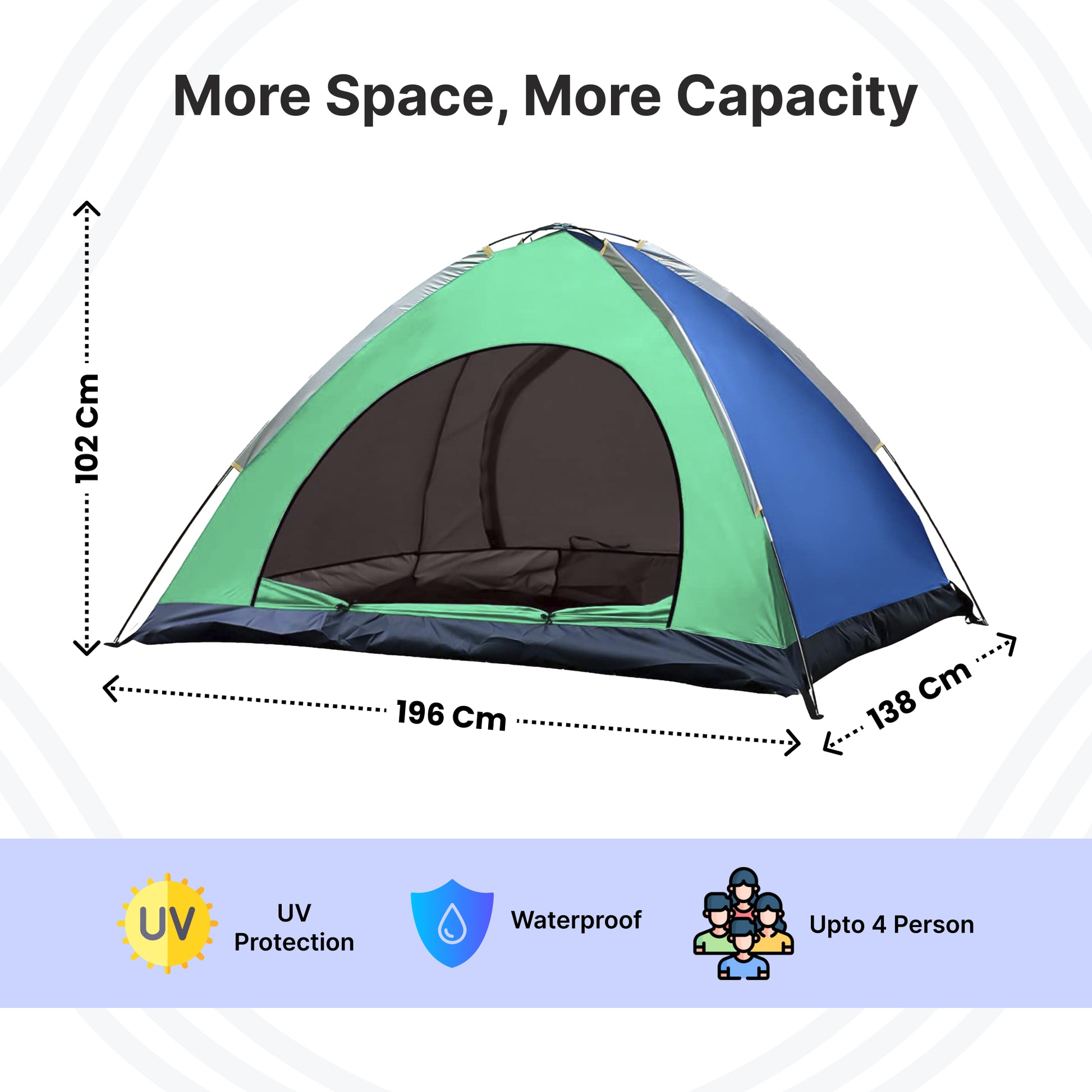 STRAUSS Portable Camping Tent - Quick 5-10 Minute Setup | Waterproof Tent for Camping | Superior Air Ventilation | Ideal Tent House for Camping| Camping Accessories | Ideal for 4 Persons,Multicolor