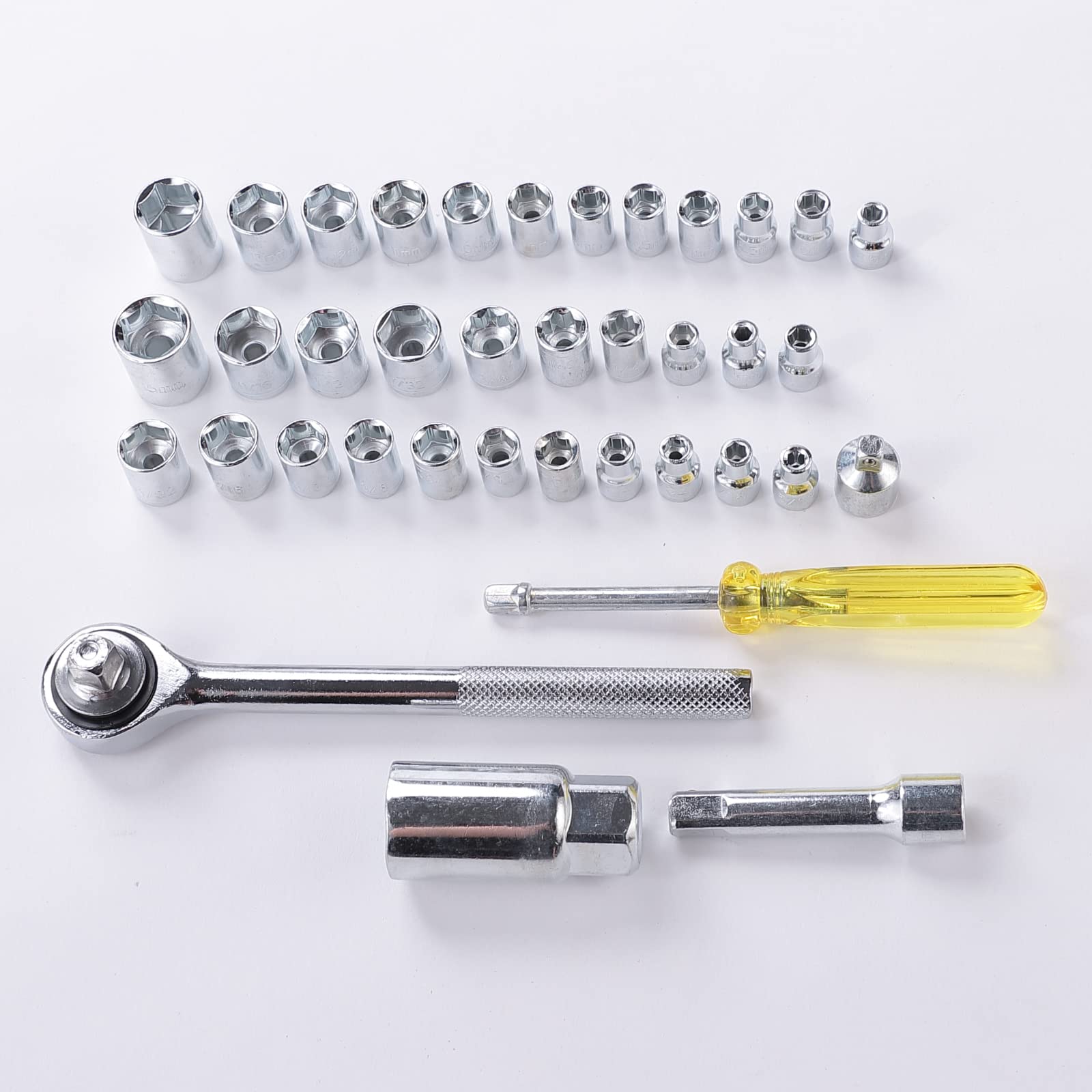 • 40 Pieces in Total: Comprehensive toolkit with sockets and a robust wrench set for every need.
