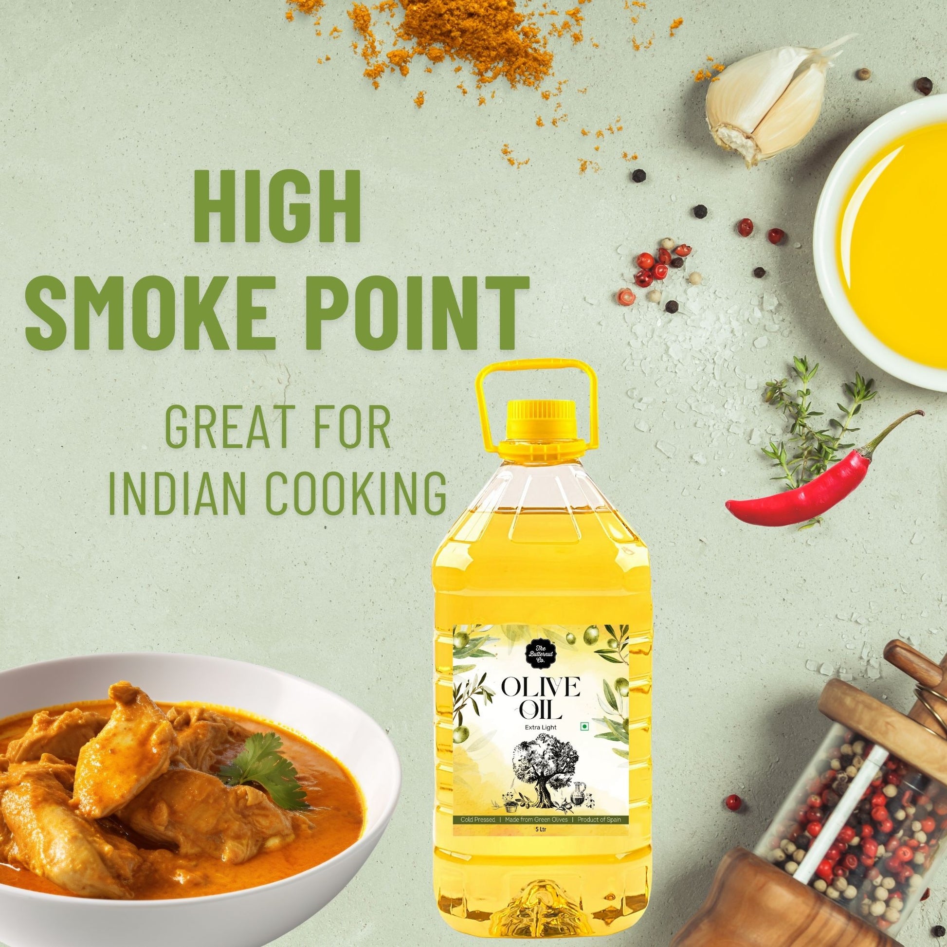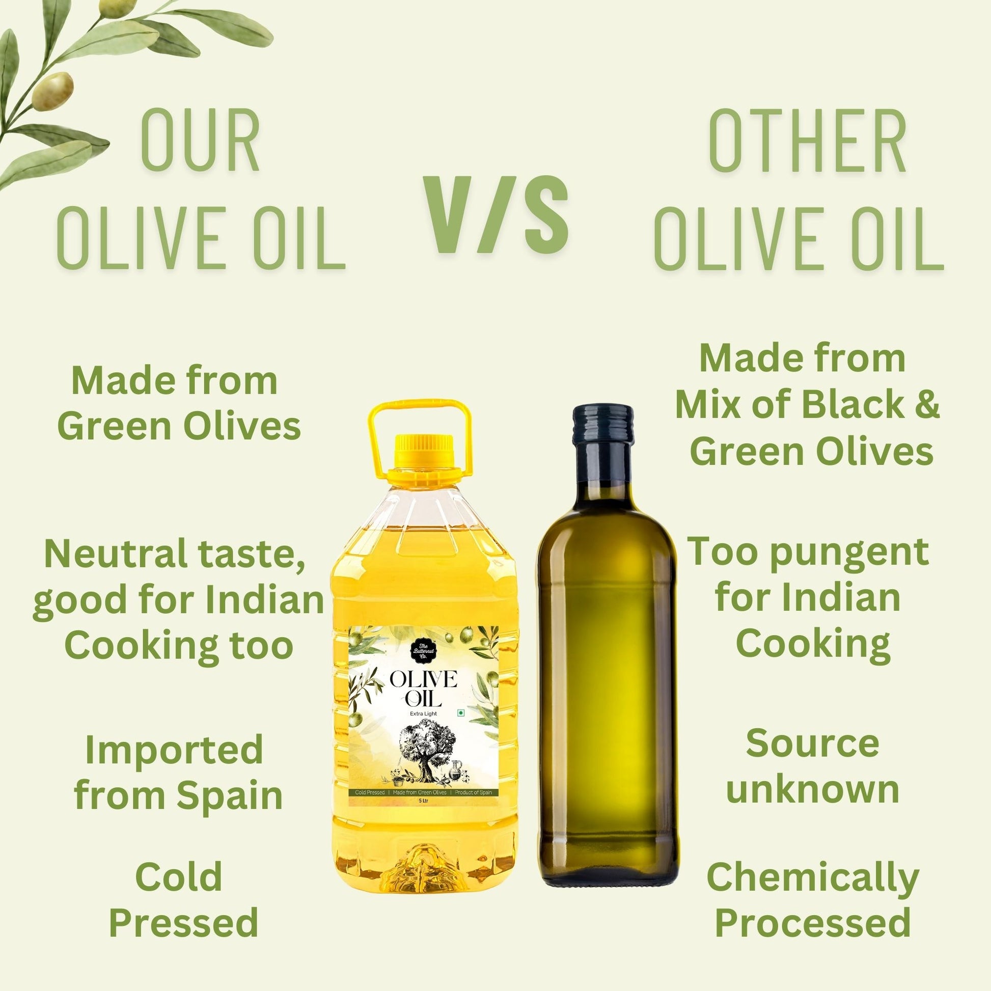 Olive Oil for Cooking I Extra Light Olive Oil I Cold Pressed Olive Oil I Imported from Spain I Made from Green Olives I For Indian Cooking like Pomace Olive Oil - 5 litre (Pack of 1)