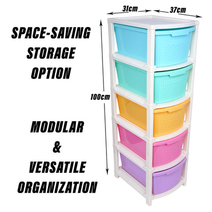 5-Tier Modular Plastic Storage Drawer Rack - Versatile Organizer | Multicolor