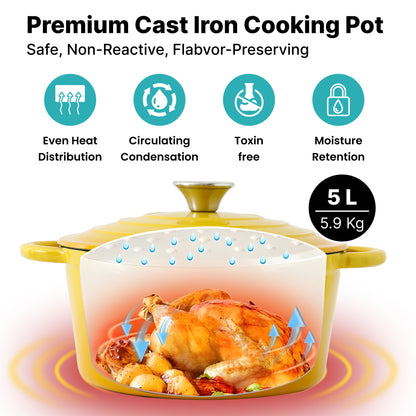 5L Dutch Oven Cookware | Enameled Cast Iron Rice Pot with Lid | Yellow
