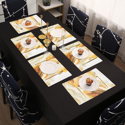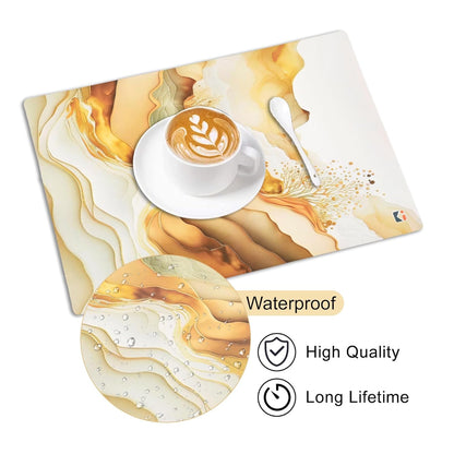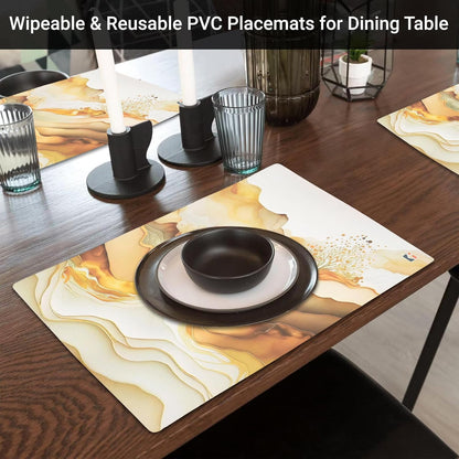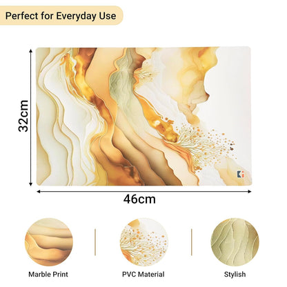 6 Pcs Set: PVC Reusable Placemats - Marble Print | 46x32 cm | Cream & Gold