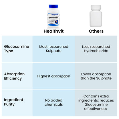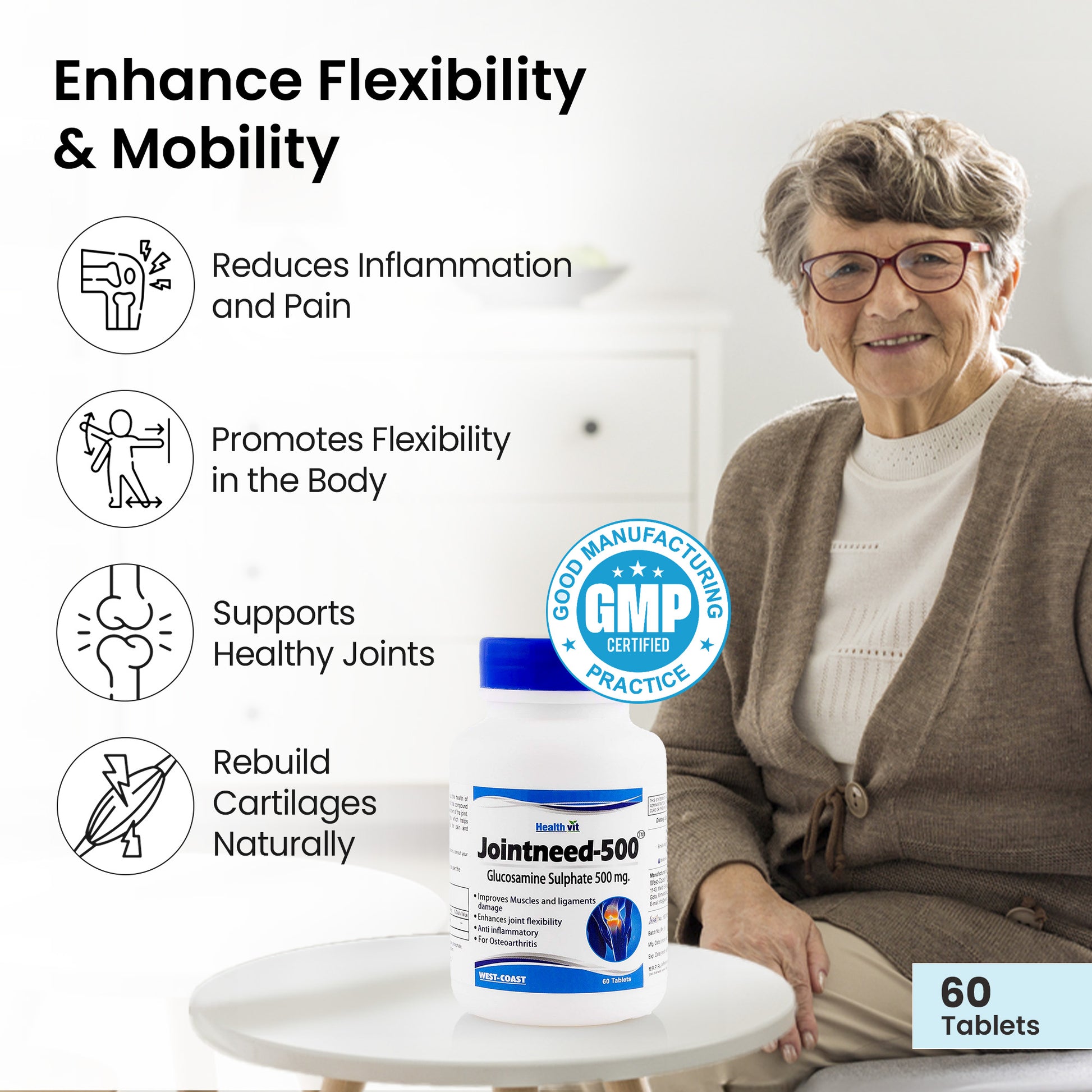 Jointneed-500 : Glucosamine Sulphate 500mg | Osteoarthritis | Joint Support | Mobility and Flexibility | Muscles | Ligaments Damage -60 Tablets