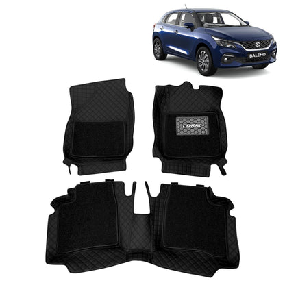 Introducing the CARBINIC 7D Car Mats, designed specifically for the Maruti Suzuki Baleno 2020. These premium mats feature 7 layers of protection, crafted from high-quality faux leather using Japanese precision cut technology. Each set ensures a custom fit tailored for your vehicle, coupled with the elegance of diamond-shaped embroidery that enhances your car's aesthetics.