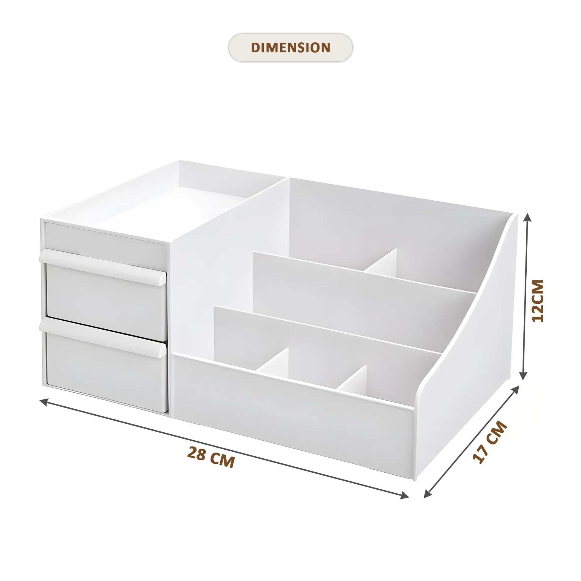 8-Compartments Cosmetic Organizer: Nail Polish & Skincare Storage | White | 28 cm x 17 cm x 12 cm