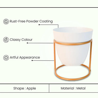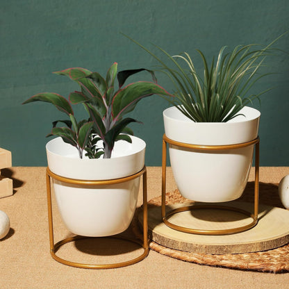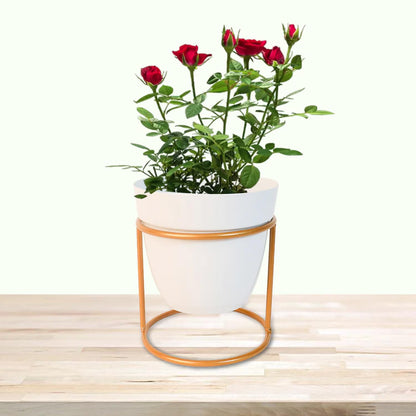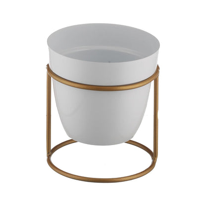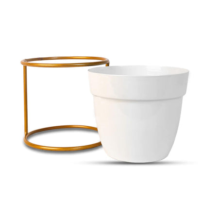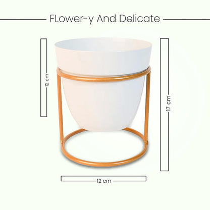 Kuber Industries Planter | Flower Planter for Office Décor | Balcony Flower Pot | Home Décor Flowers Pot | Decorative Planter Basket | Desktop Planter with Golden Stand | 1129-B | White