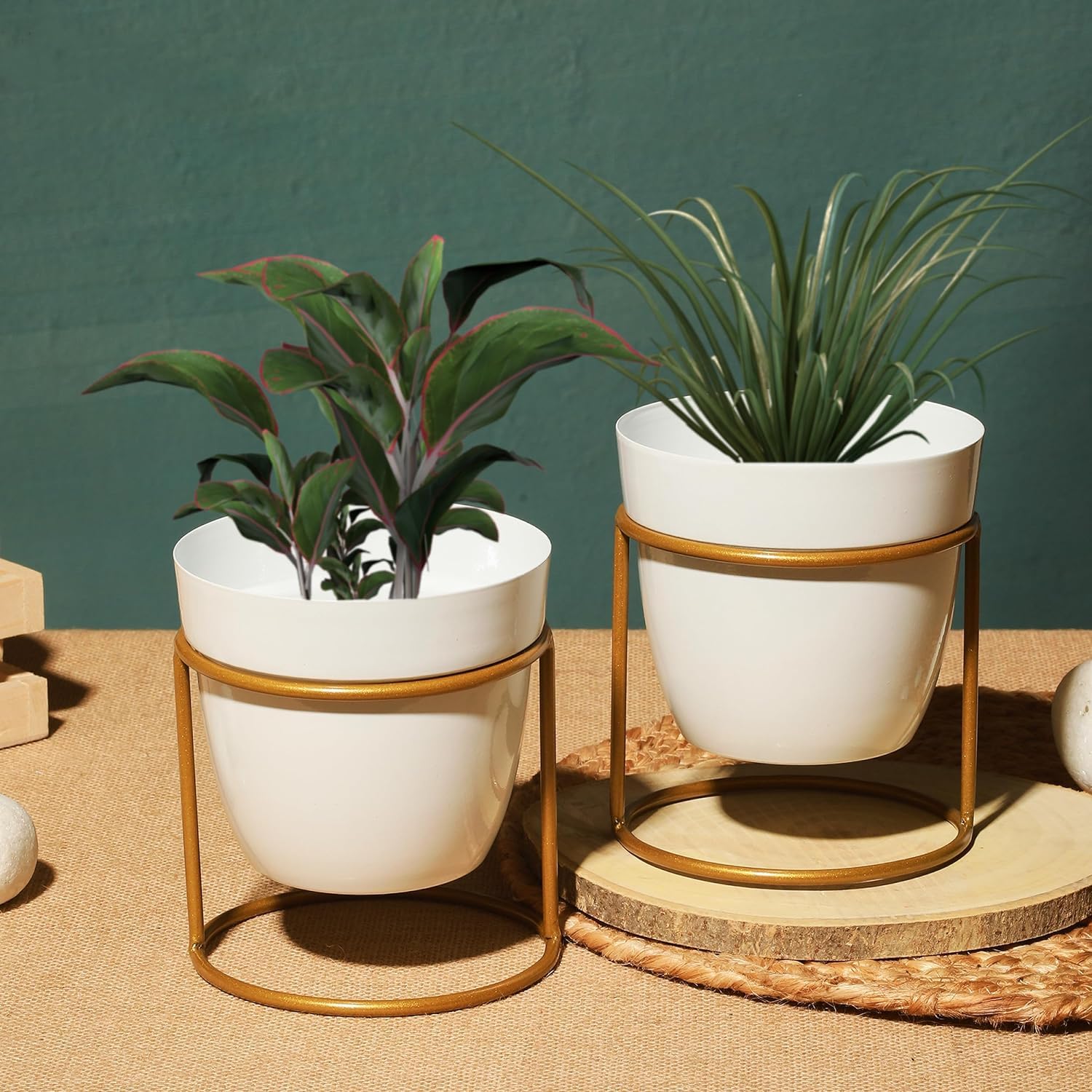 • ATTRACTIVE DESIGN: The modern aesthetics of the planter combined with a golden stand enhances any décor style.