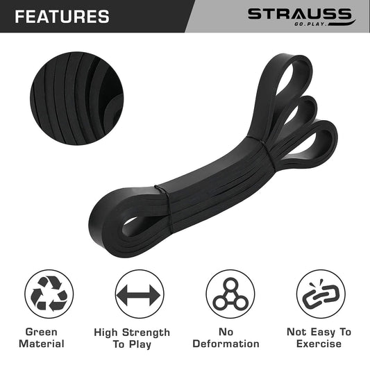 Strauss Resistance Band | Pull Up Bands Ideal for Home Exercise,Chin Ups, Squats & Core Workout | for Gym Men & Women | Resistance Bands, Loop Bands & Toning Bands | Resistance Level: 16-32Kg,(Black)