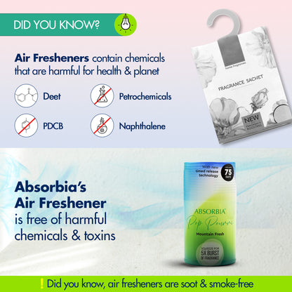 Bring the refreshing essence of the mountains into your home or vehicle. Choose ABSORBIA Frago Ultimate Air Freshener for a breath of fresh air that truly lasts!