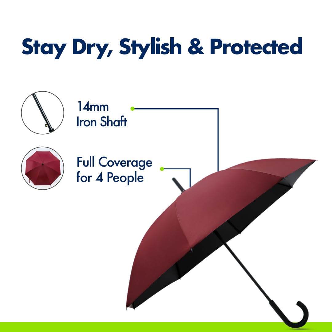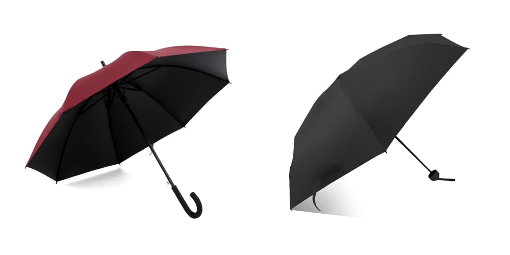 Introducing the ABSORBIA Straight Umbrella in a stunning Wine Red and the elegant 5X Folding Umbrella in classic Black. This exceptional combination is meticulously crafted to provide you with unmatched protection against both rain and sun, ensuring you stay fashionable and dry, no matter the weather.