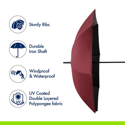 ABSORBIA Straight Umbrella Wine Red & 5X Folding Umbrella Black For Rain & Sun Protection and also windproof | Double Layer Folding Portable Umbrella with Cover |Fancy and Easy to Travel…