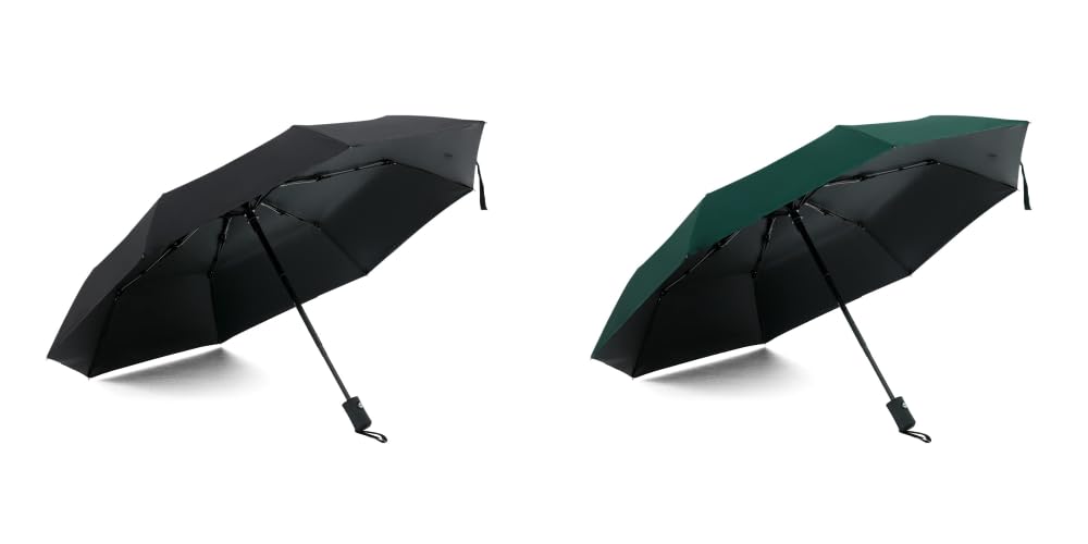 ABSORBIA Unisex 3X Folding Umbrella Black and Dark Green (Pack of 2), For Rain & Sun Protection and also windproof | Double Layer Folding Portable Umbrella with Cover | Fancy and Easy to Travel