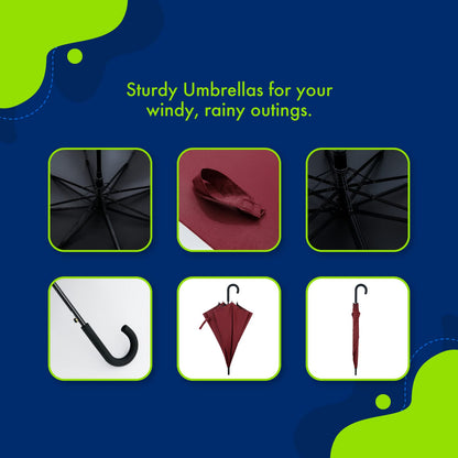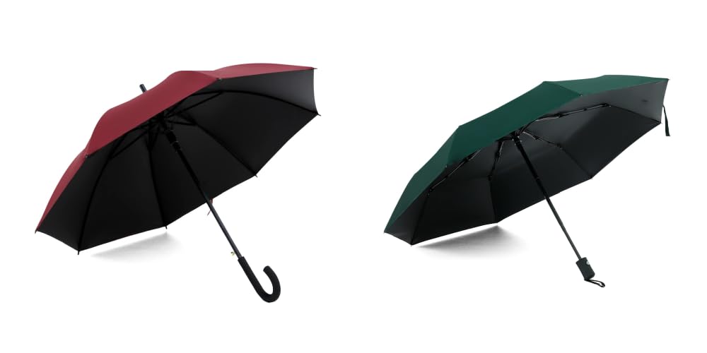 Introducing the ABSORBIA Unisex Straight Umbrella in a sophisticated wine red, paired with the 3X Folding Umbrella in an elegant dark green. This perfect pack of 2 umbrellas is designed to provide exceptional protection from both rain and sun, ensuring you are always prepared for any weather condition.