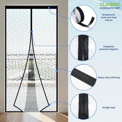 - INSULATED MOSQUITO DOOR NET: Keeps rooms cool in the summer and warm in the winter, effectively reducing energy loss.