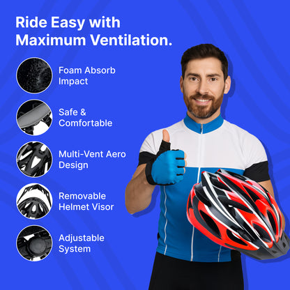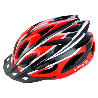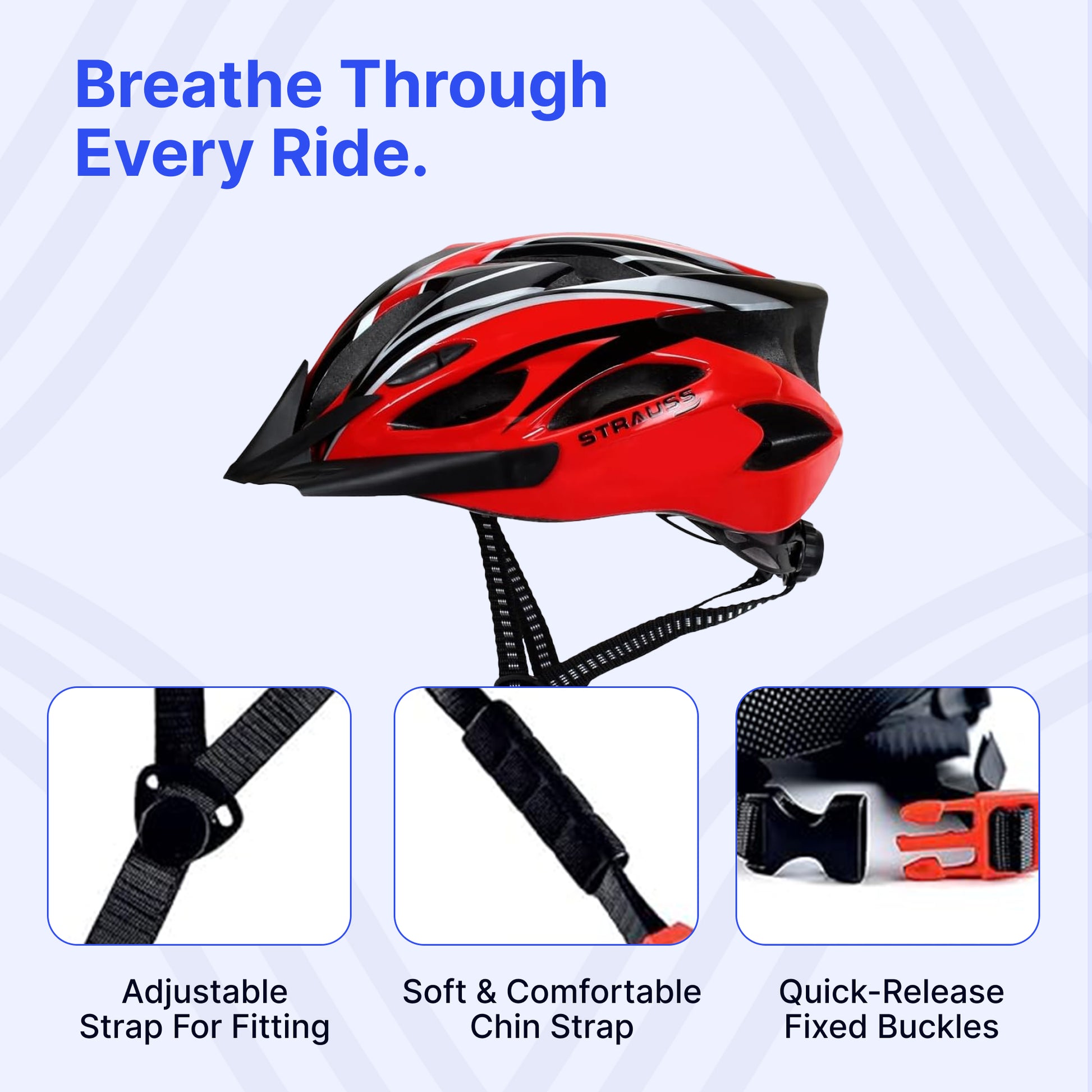 Strauss Adjustable Cycling Helmet with Detachable Visor | Light Weight with Superior Ventilation | Mountain, Road Bike & Skating Helmet | Ideal for Adults and Kids, (Black/Red)