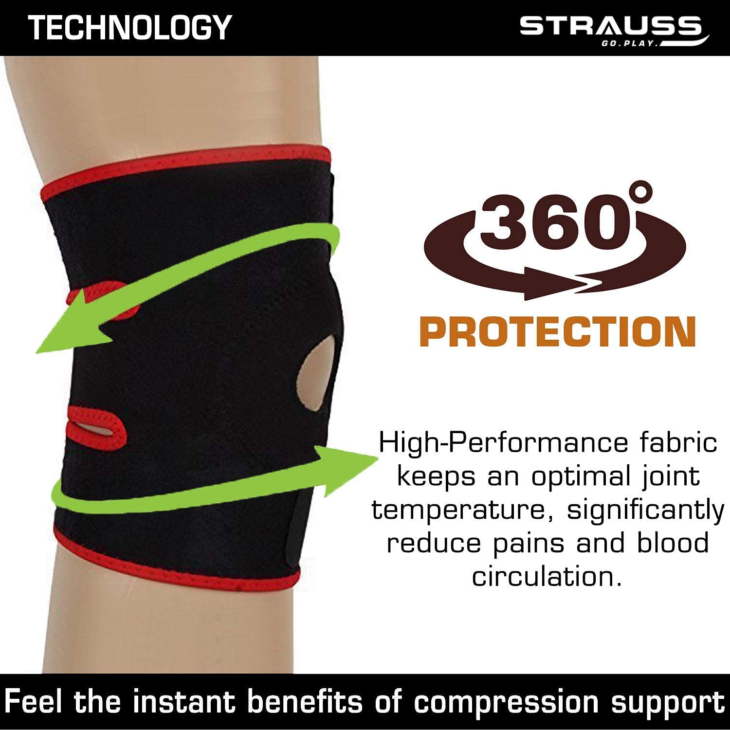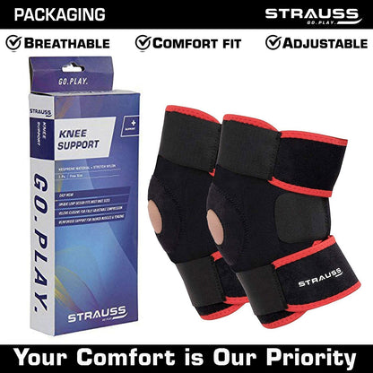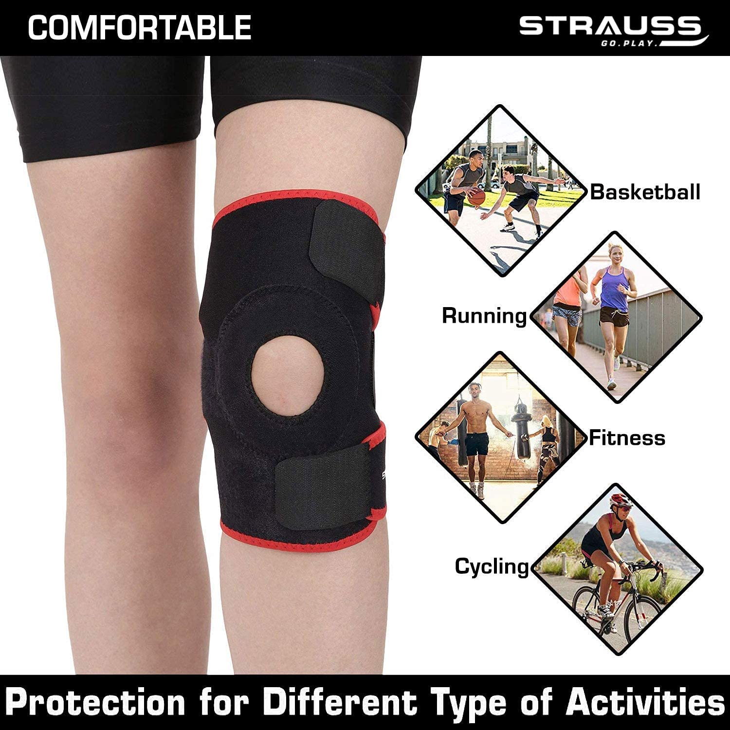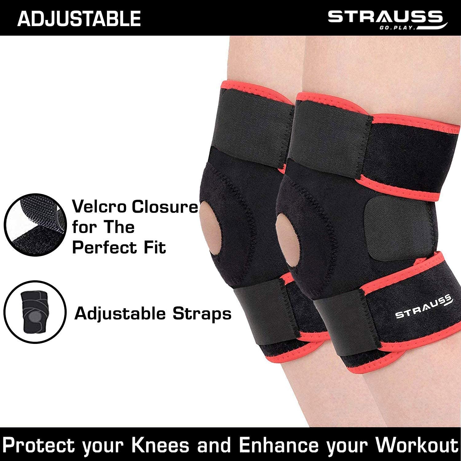 Strauss Adjustable Knee Support Patella|Knee Cap for Knee Pain, Gym Workout, Running, Arthritis, and Protection for Men and Women| Knee Brace |Knee Guard |Knee belt | Joint pain relief | Pair, (Free Size, Black/Red)