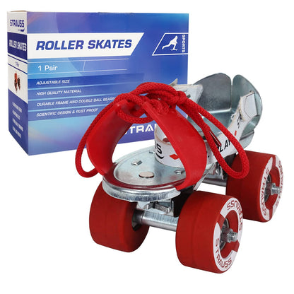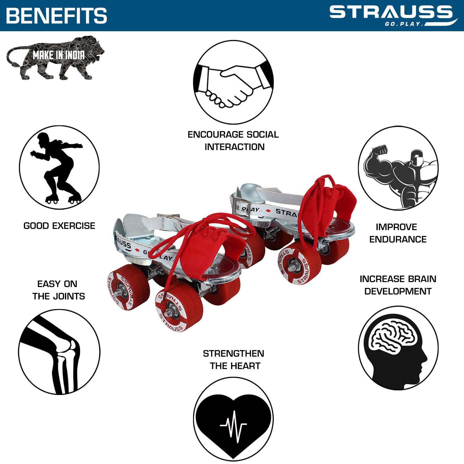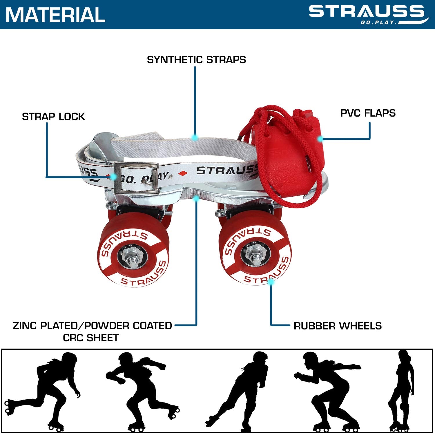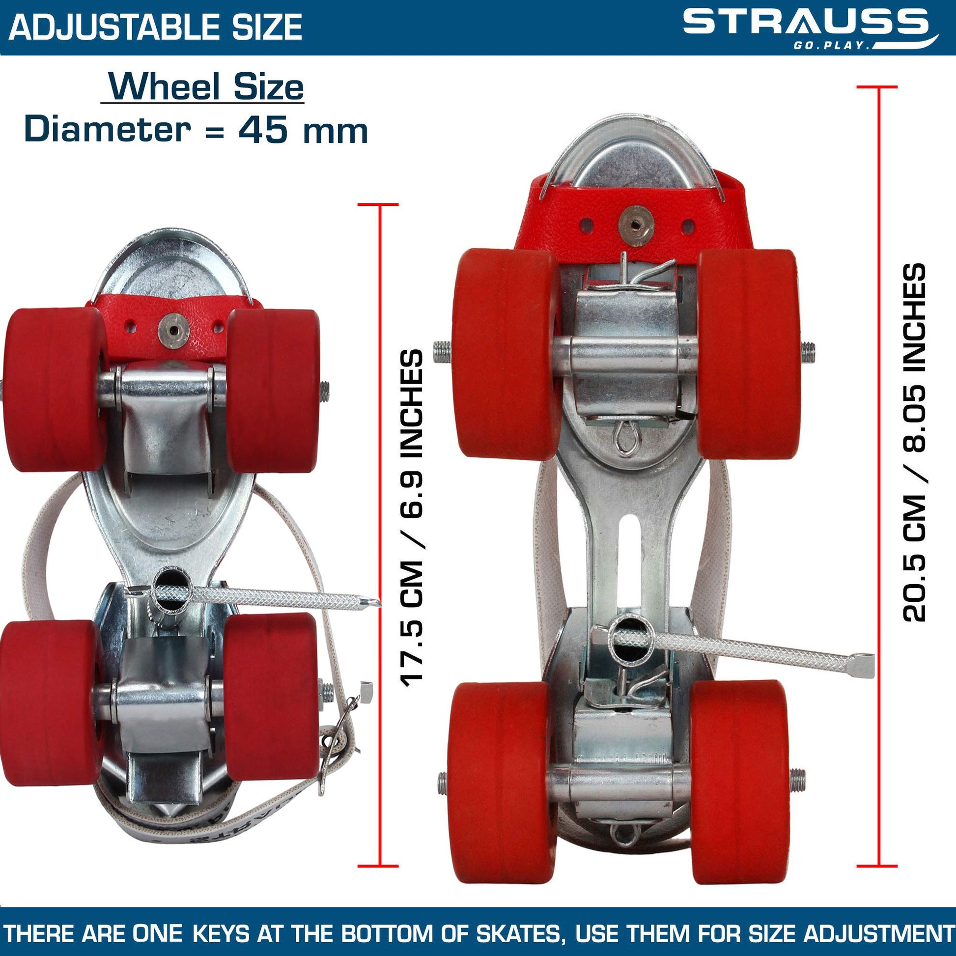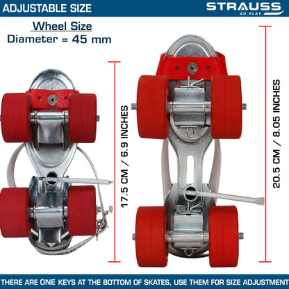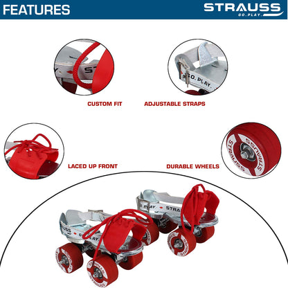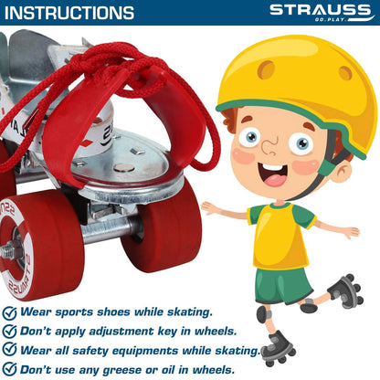STRAUSS Tenacity Roller Skates | Roller Blades for Kids | Adjustable Shoe Size | 4 Wheels Skating Shoe for Boys and Girls | Ideal for Indoor and Outdoor Skating | Age Group 4-6 Years, (Red)