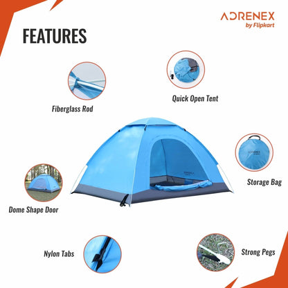 Adrenex Portable Camping Tent - Waterproof & Easy Setup | Fits 6 | Dome Shaped | Blue