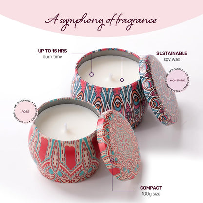 Scented Candles for Home. Diwali Decoration Items for Home Decor, Christmas New Year Gift Items, Birthday Gift, Rose & Mon Paris Fragrance Combo(120 GMS Each)
