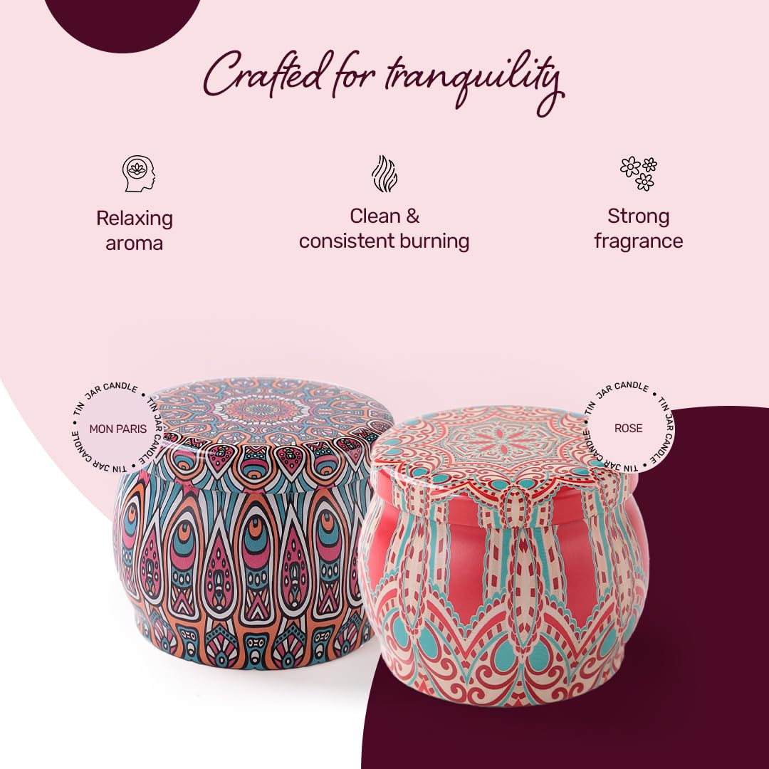 • Fragrance Combo: This set features two enchanting fragrances—Rose and Mon Paris, each weighing 120 GMS, transforming your spaces into inviting and warm havens.