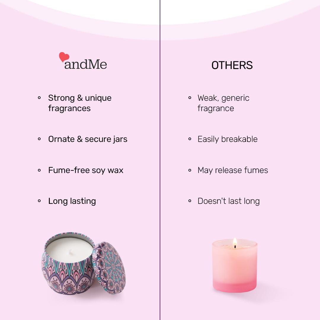 Immerse yourself in the soothing ambiance of Andme Scented Candles, meticulously crafted for home decor and as thoughtful gifts. Whether it's a festive occasion like Diwali or a simple evening at home, these delightful candles envelop your surroundings with enchanting lavender aromas, making them the perfect choice for any celebration.