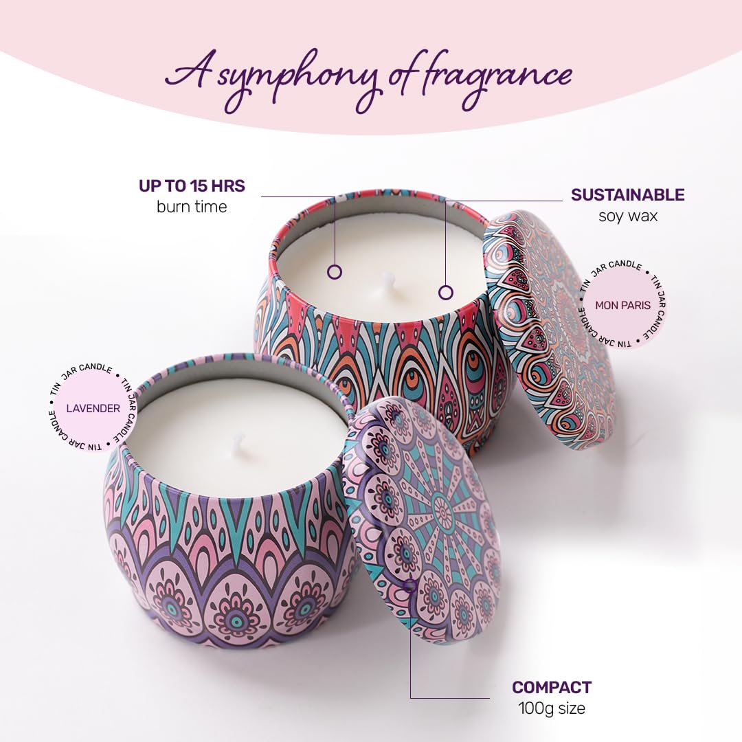 • Relaxing Fragrances: Infuse your home with delightful scents of Mon Paris and Lavender, creating a calming atmosphere ideal for meditation, relaxation, or a romantic evening.