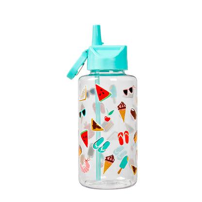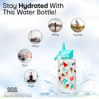 1 L Non-Toxic Plastic Sipper Water Bottle - Leak Proof, Flip-Top Spout & Straw | BPA-Free | Fruits Print