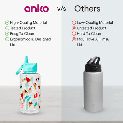 This bottle is more than just a hydration tool; it's a delightful accessory that makes staying hydrated a stylish habit. Elevate your hydration experience with the Anko 1 L Non-Toxic Leak Proof Plastic Sipper Water Bottle and enjoy a refreshing sip wherever life takes you!