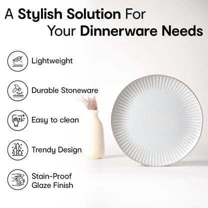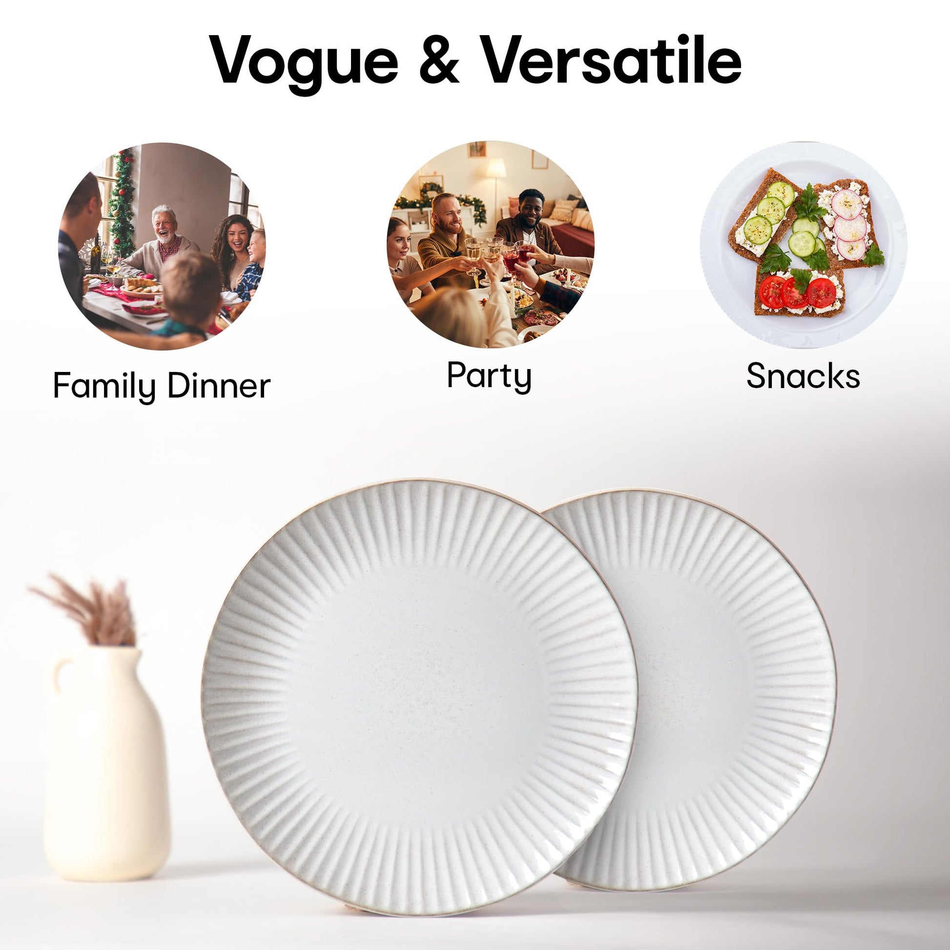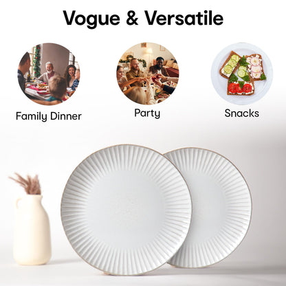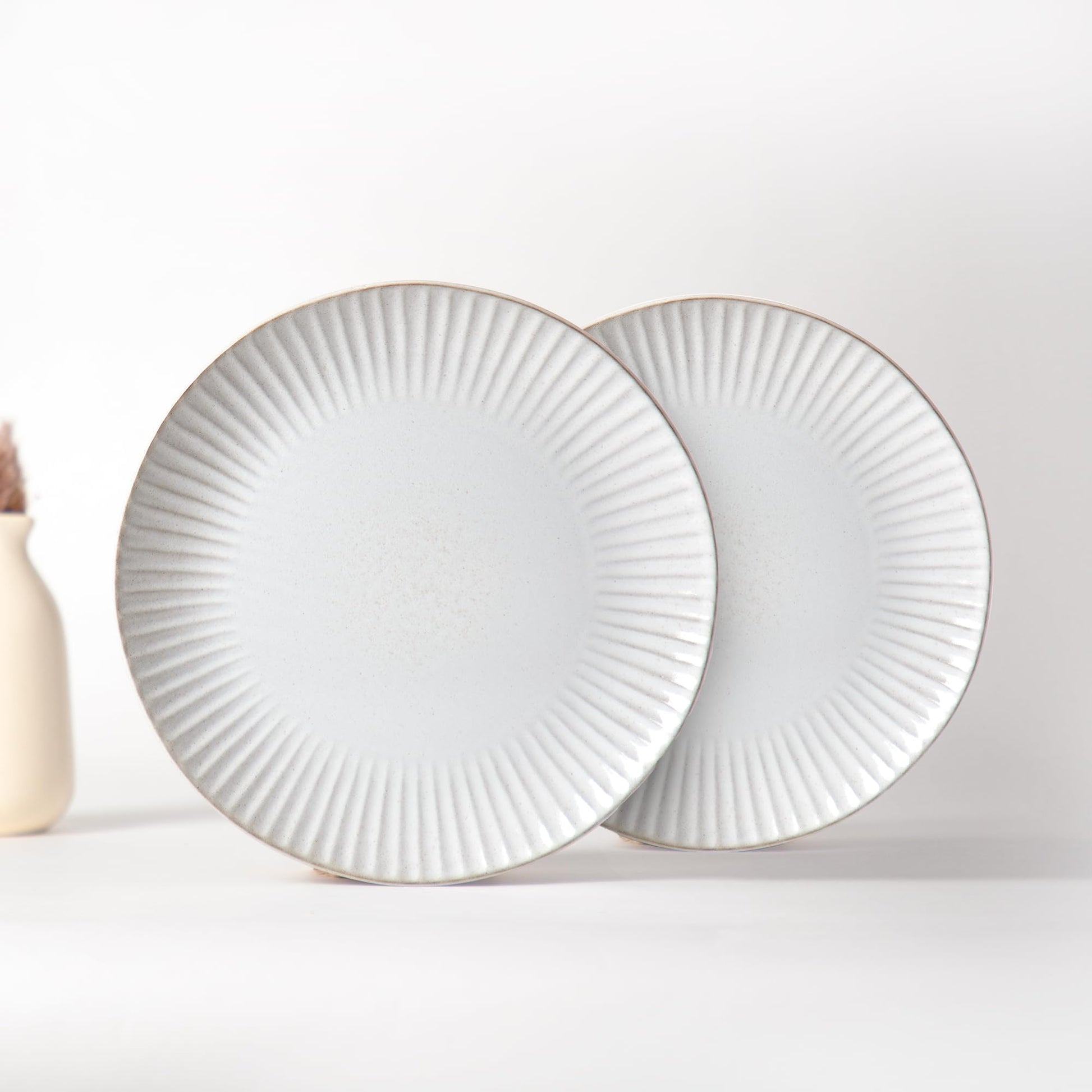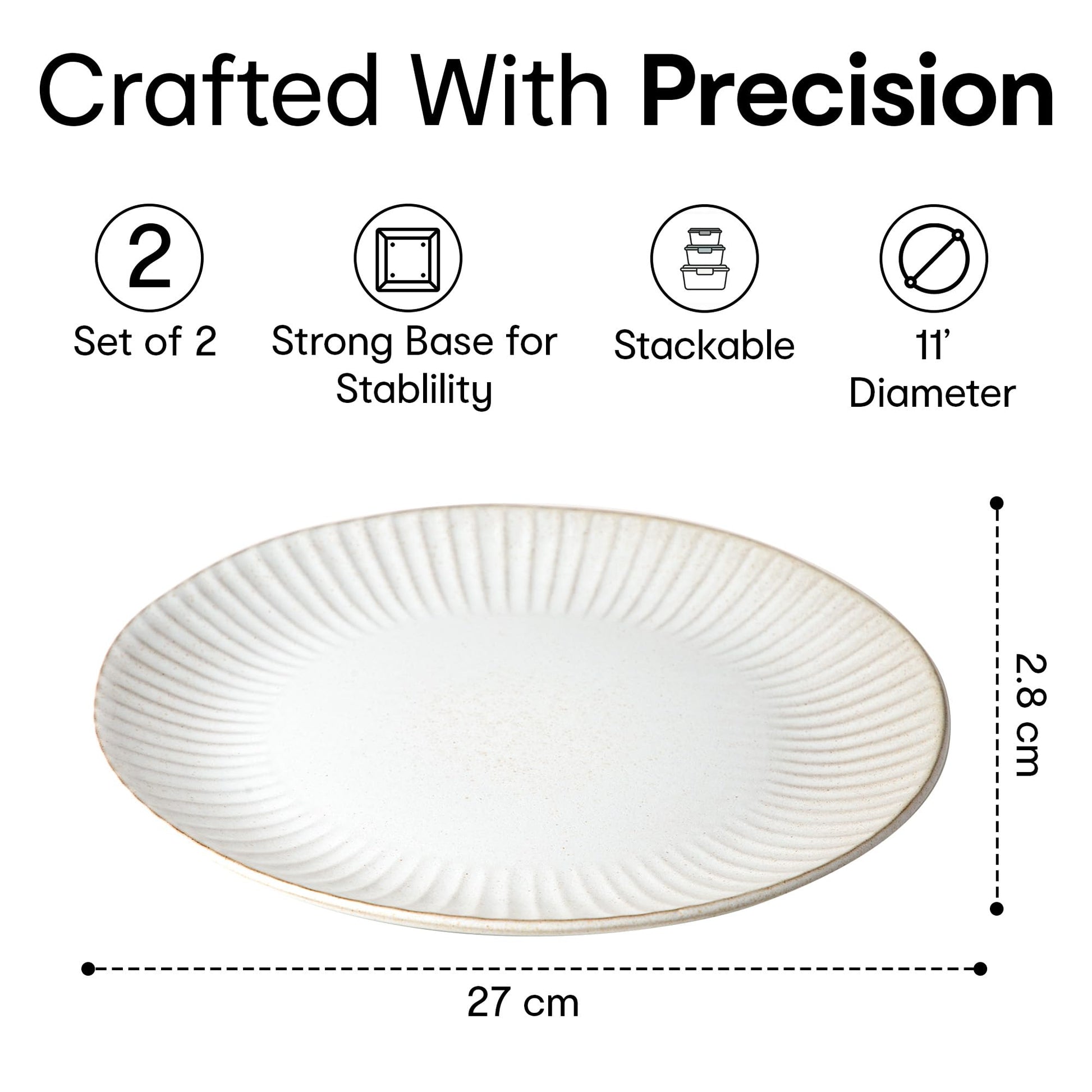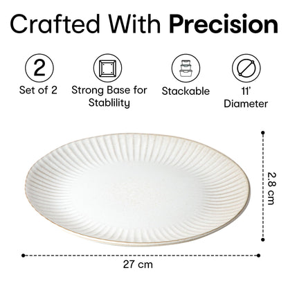 10" Sable Stoneware Dinner Plate | Set of 2 | Unique Embossed Design | Microwave Safe, Dishwasher Safe | Hand Glazed | Natural Beige and Grey Color | BPA Free