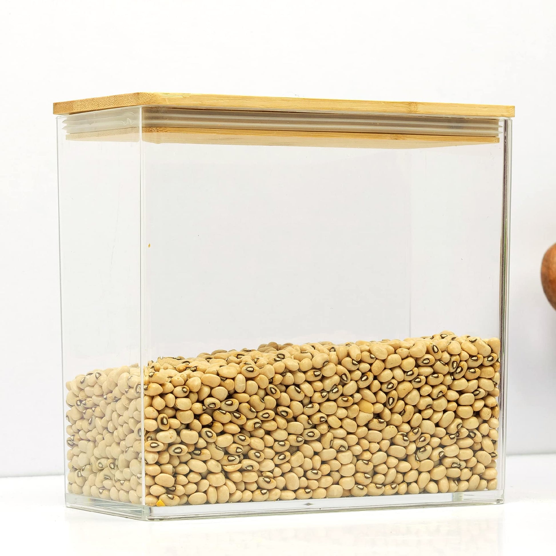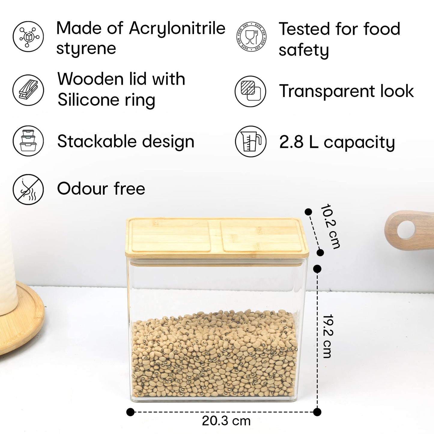 Anko 2.8 Litre Tall Acrylic Airtight Food Storage Container With Bamboo Wood Lid | BPA-free Multi-utility Leak-proof Clear Acrylic Container for Spices, Dried Herbs, Nuts,Cereals and other Condiments