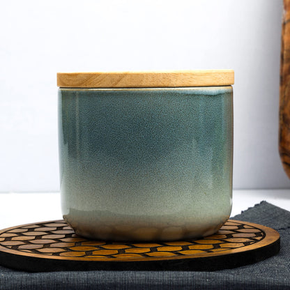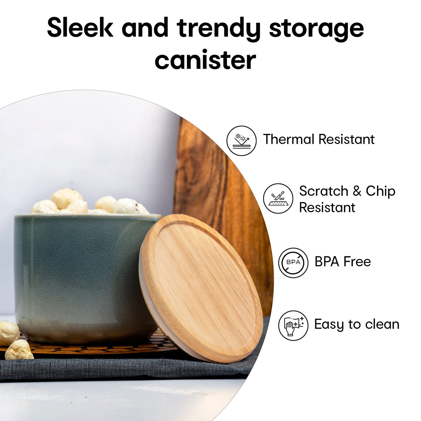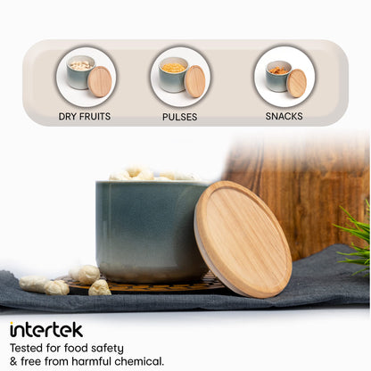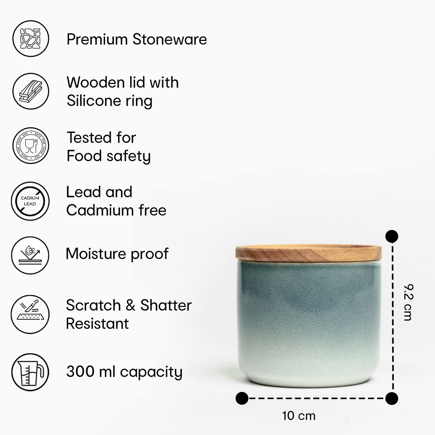 300Ml Stoneware Ceramic Jars For Kitchen Storage | Airtight Container Set For Kitchen With Rubberwood Lid & Silicone Ring | Kitchen Container For Snacks, Tea, Sugar | Grey, Blue-Green