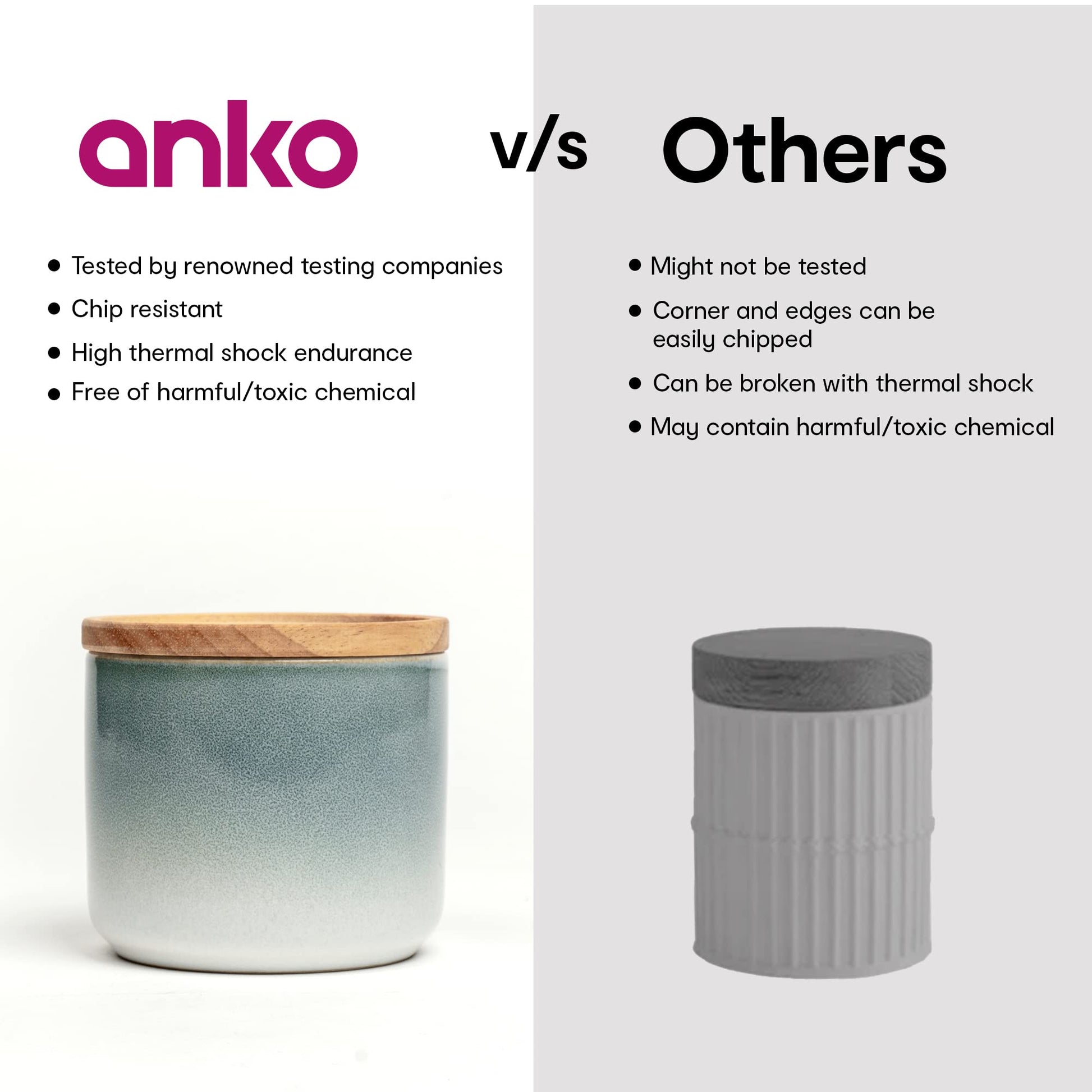 Anko 300Ml Stoneware Ceramic Jars For Kitchen Storage | Airtight Container Set For Kitchen With Rubberwood Lid & Silicone Ring | Kitchen Container For Snacks, Tea, Sugar | Grey, Blue-Green