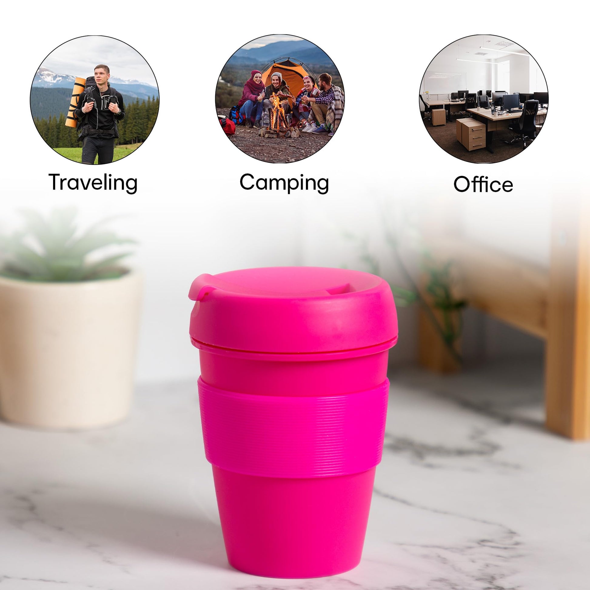 430ml Reusable Travel Cup |Beverage Sipper | Leak-Proof and Reusable | BPA Free | Ideal for Home, Office, Kitchen, Gifting, Traveling| Dishwasher and Microwave Safe| Fluro Pink | Set of 2