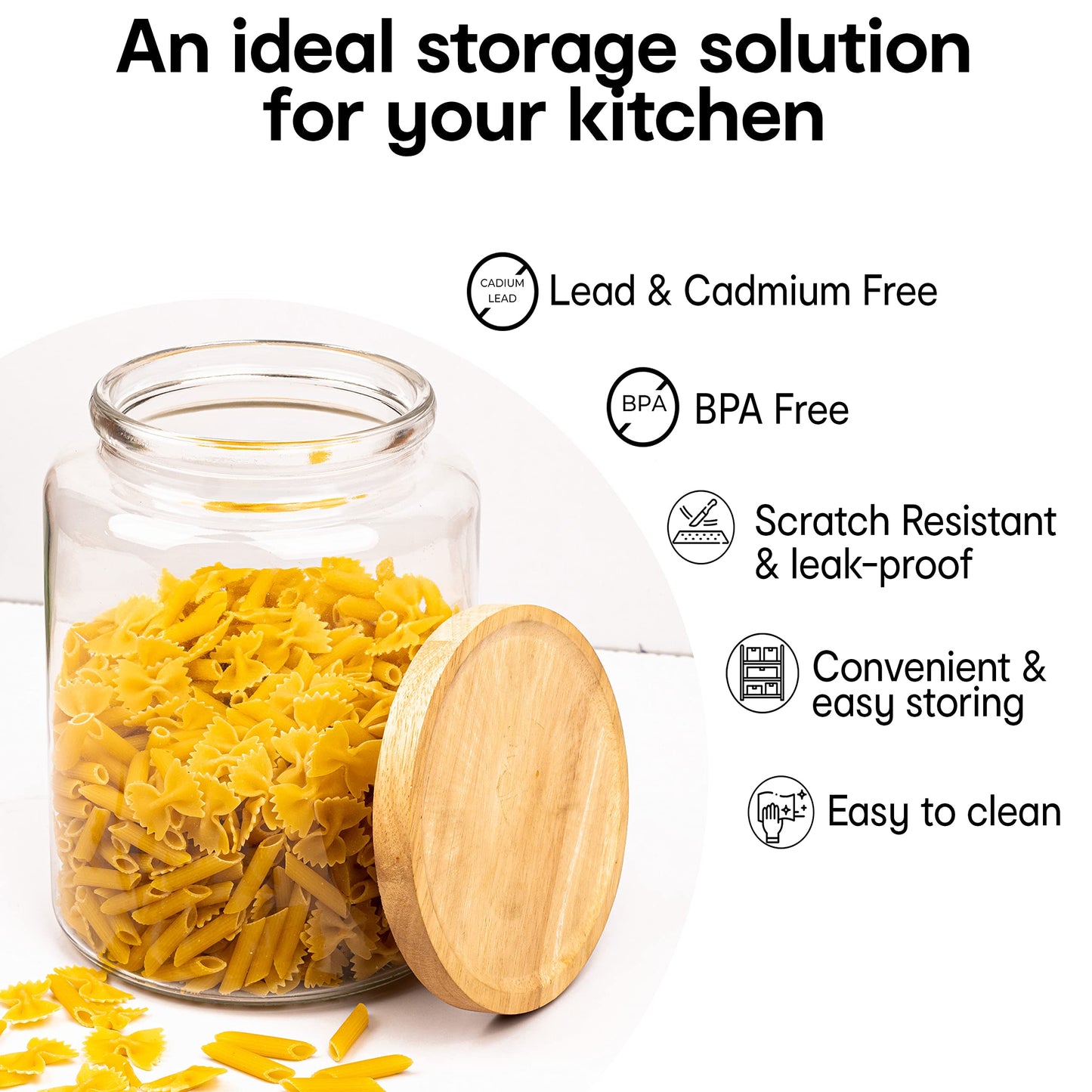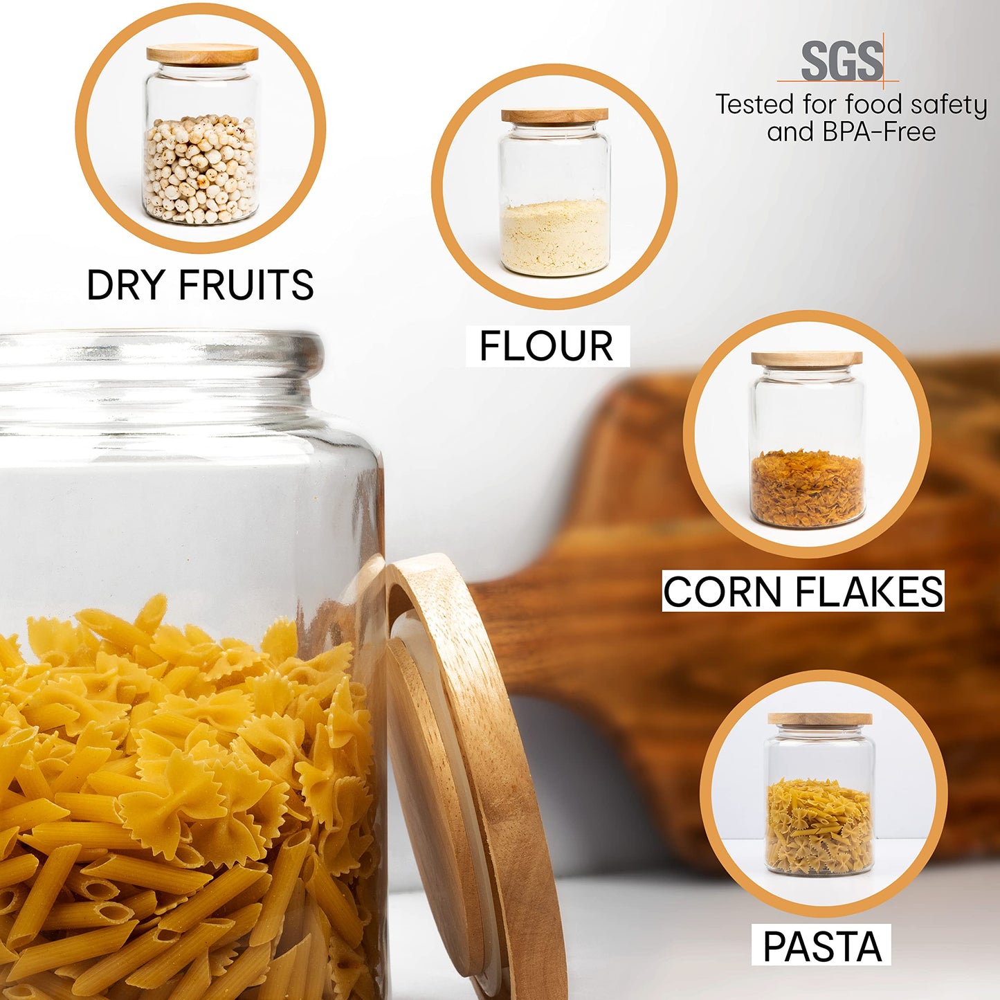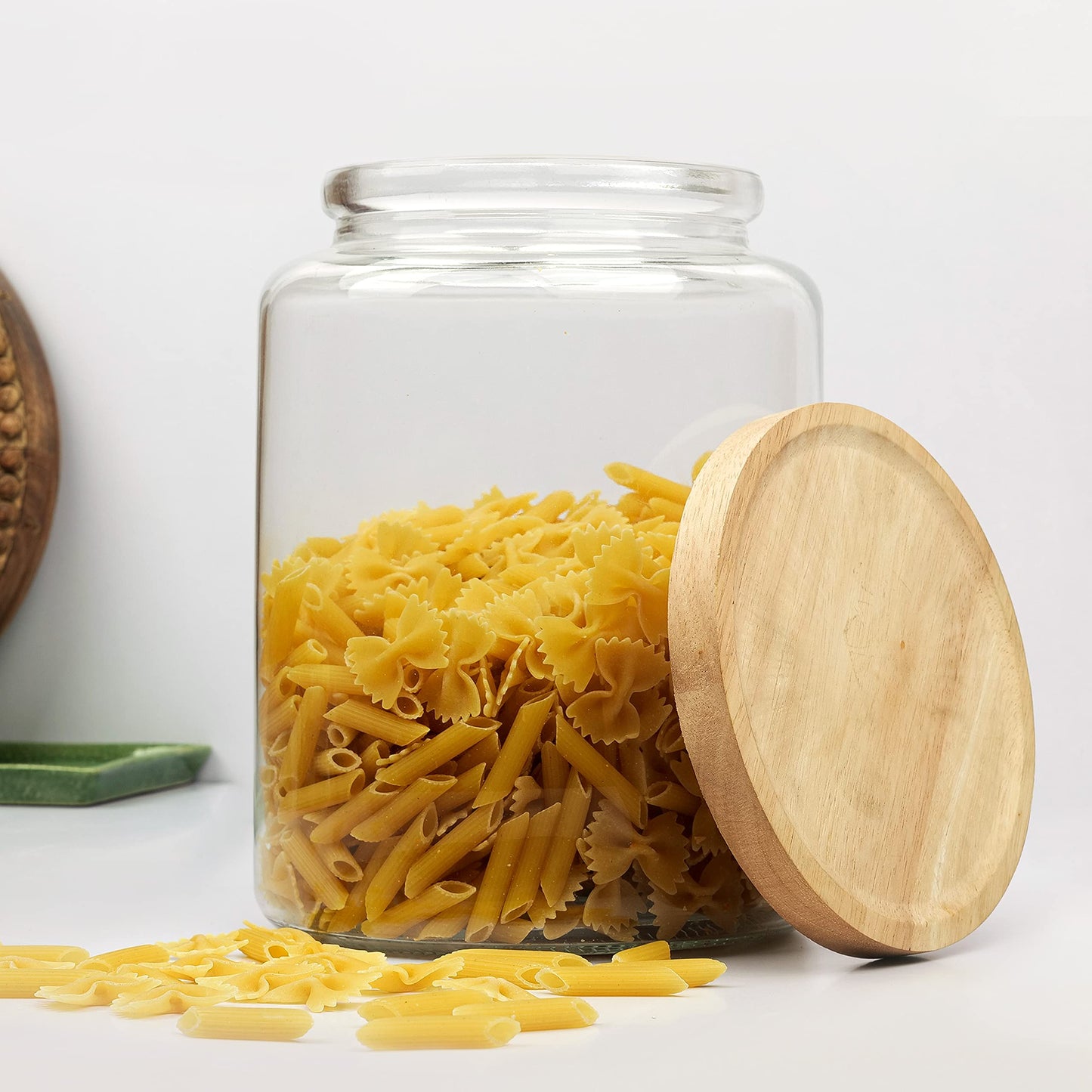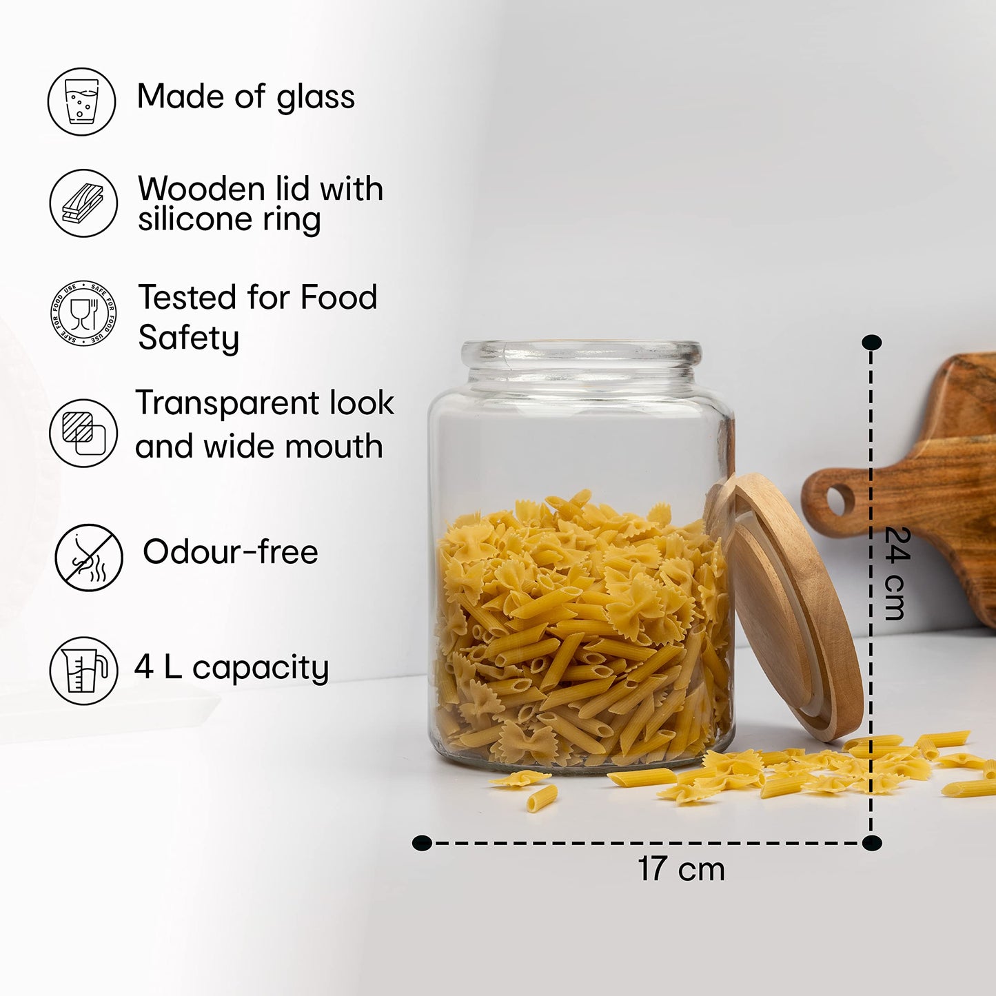 4L Clear Glass Jar for Kitchen Storage | Set of 1 | Airtight Container Set for Kitchen with Rubberwood Lid | Dishwasher Safe Kitchen Storage Container Set for Flour/Cereal/Pulses