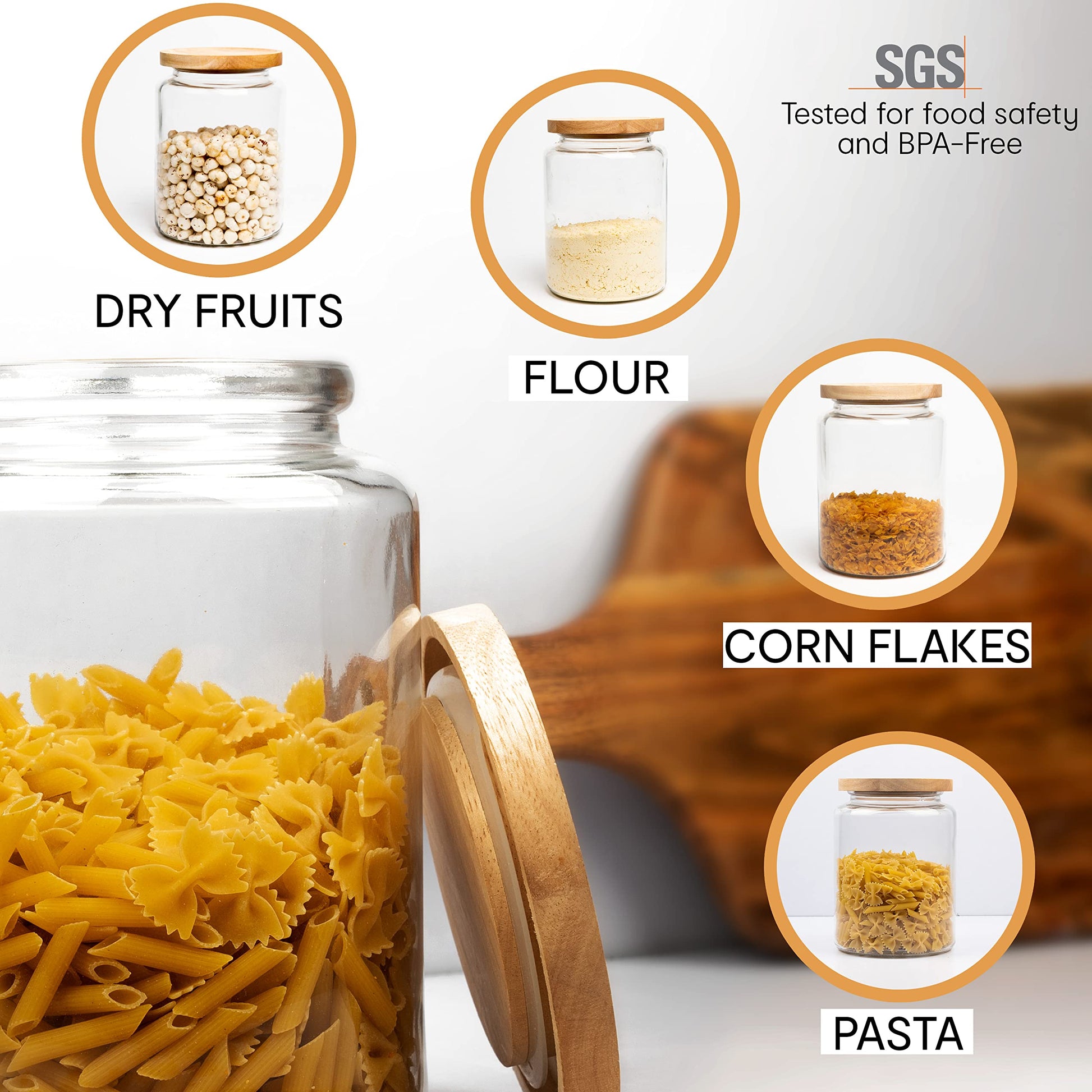 - Airtight Seal: The rubberwood lid coupled with a silicone ring creates an airtight seal, locking in freshness and ensuring that your foods like flour, cereals, and pulses remain delicious longer.