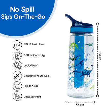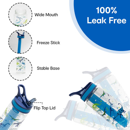 650 ML Leakproof Plastic Sipper Water Bottle - With Freeze Stick, Straw & Flip-Top Lid | Blue Print